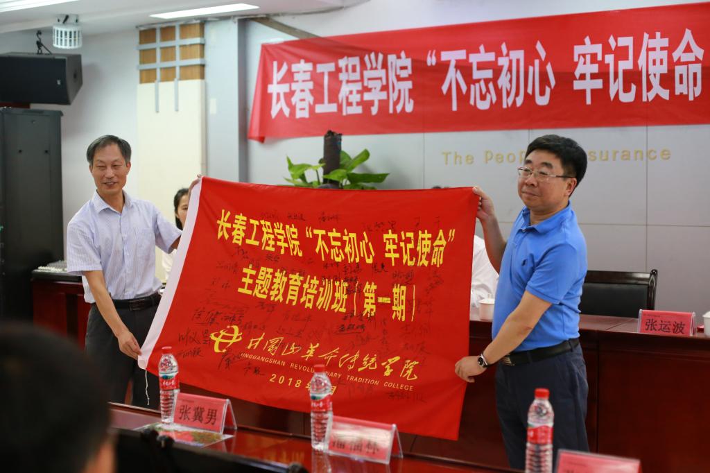 井冈山是中国革命的摇篮,是我们接受革命传统教育、陶冶情操、净化心灵、提升境界的生动课堂。5月18日,学校“不忘初心 牢记使命”主题教育培训班(第一期)结业仪式在革命圣地井冈山举行。井冈山革命传统学院常务副院长龙富林,我校党委书记潘福林、党委副书记张冀男出席结业仪式。