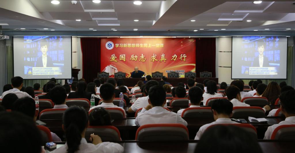 按照教育部和省高校工委“学习新思想高校师生同上一堂课”活动的统一部署,6月13日下午,我校在七教十三楼报告厅举行了“学习新思想师生同上一堂课”报告会。报告会邀请了马克思主义学院副教授高胜民老师作精彩授课,学团干部,学生党员、“学习筑梦”班学员代表等200余名师生同堂学习。