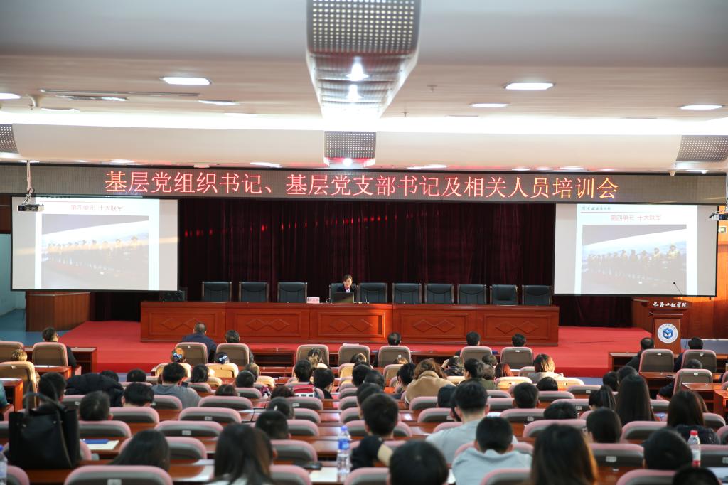 学校各直属党组织书记、副书记,党支部书记、兼职组织员,2018年下半年党员发展对象,部分入党积极分子共300余人参加活动。