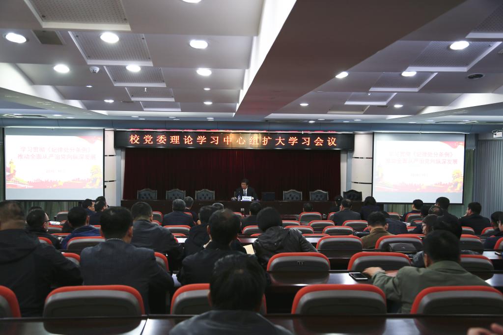 10月17日下午,学校在第一报告厅召开校党委理论学习中心组扩大学习会议,专题学习中央新修订颁布的《中国共产党纪律处分条例》。党委书记潘福林主持会议并讲话。