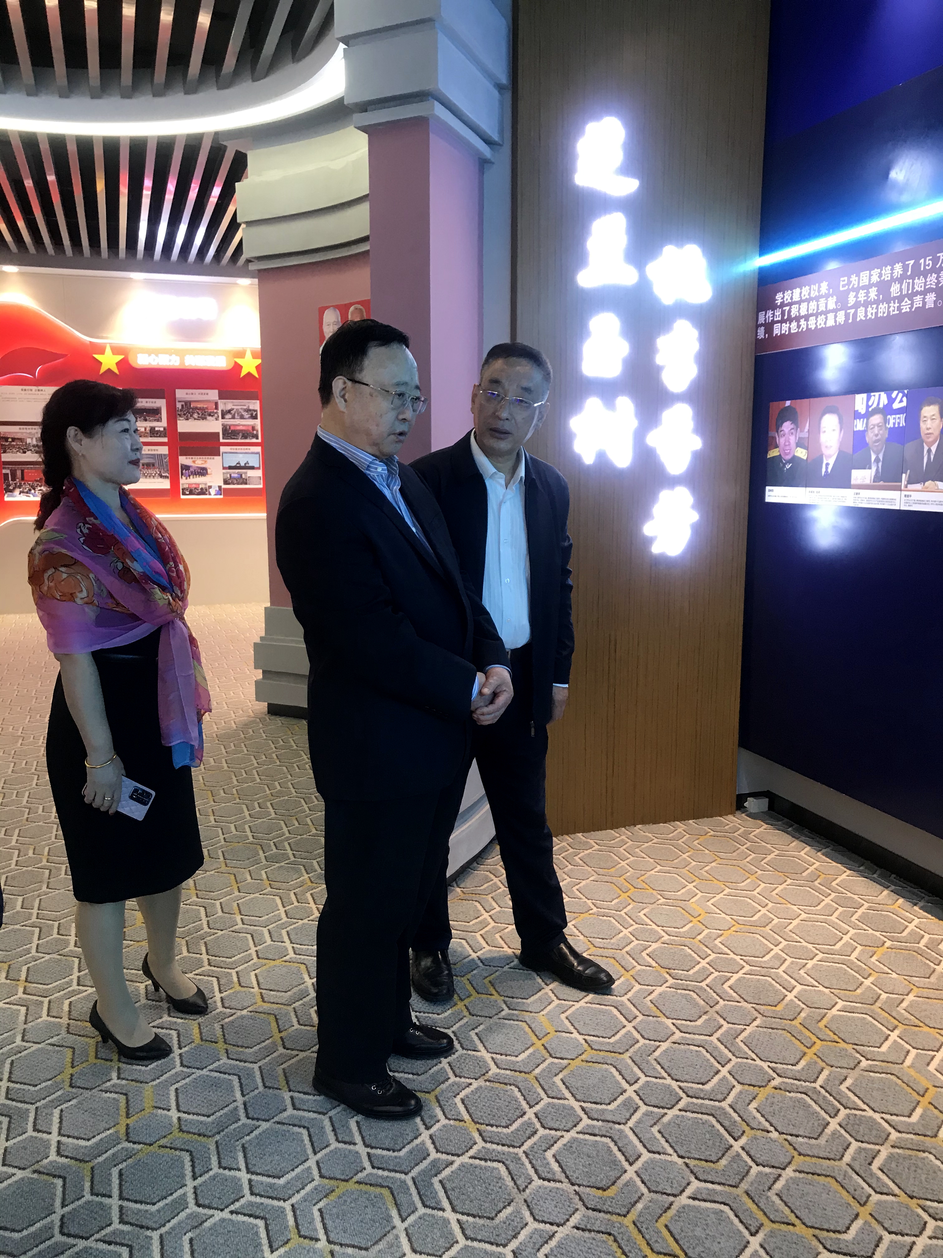 在历史展厅,徐建校友驻足在长春建筑高等专科学校展区,与窦立军副校长共同回忆校园时光,并表示对冶建礼堂的建设记忆犹新;在参观现代展厅时,徐建校友对我校二十年来的建设成果给予了好评,他表示,作为校友看到学校的发展成就,感到非常地高兴,希望学校再接再厉,再创辉煌。