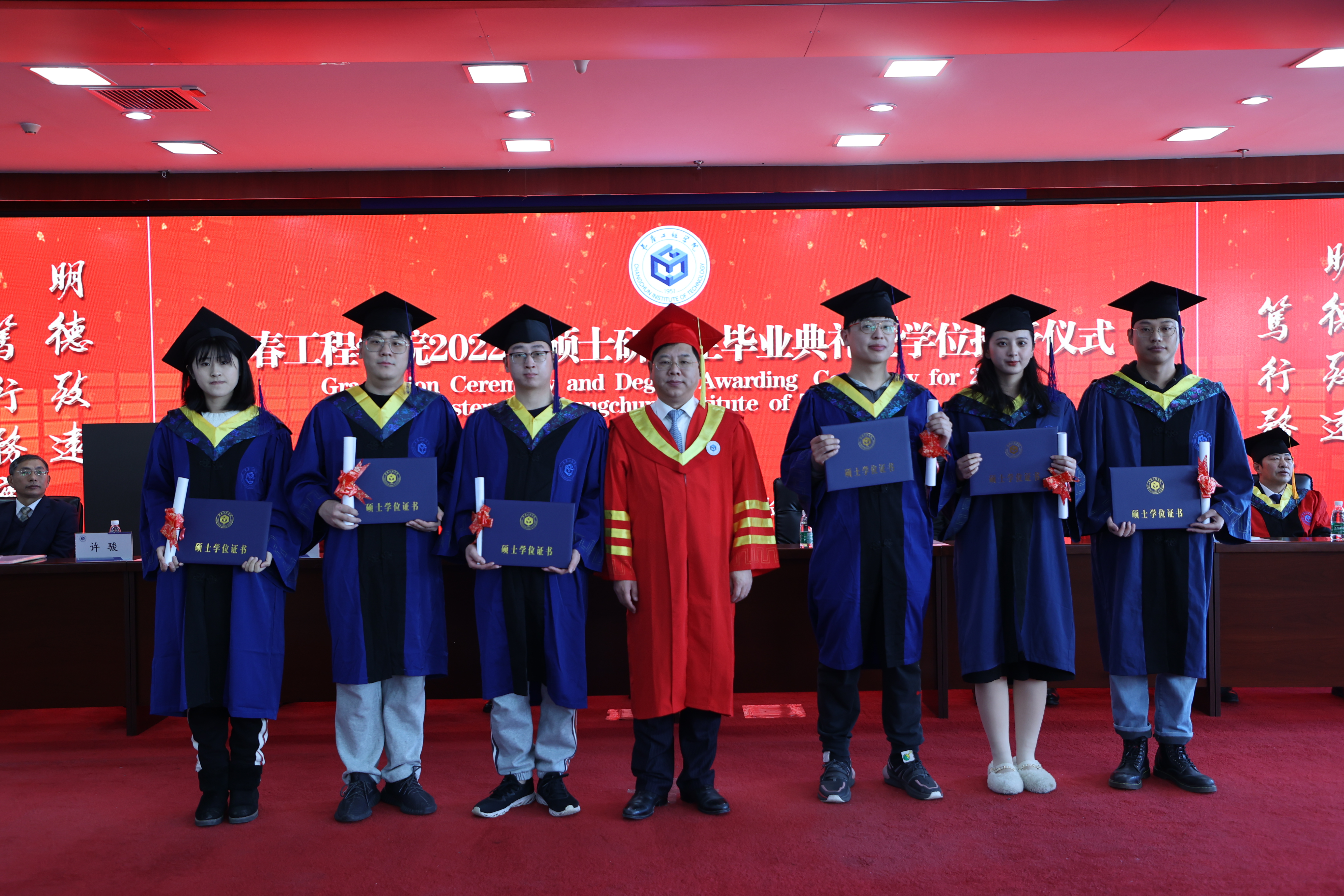 学校校长陈权为毕业生颁发了学位证书和毕业证书,并合影留念。