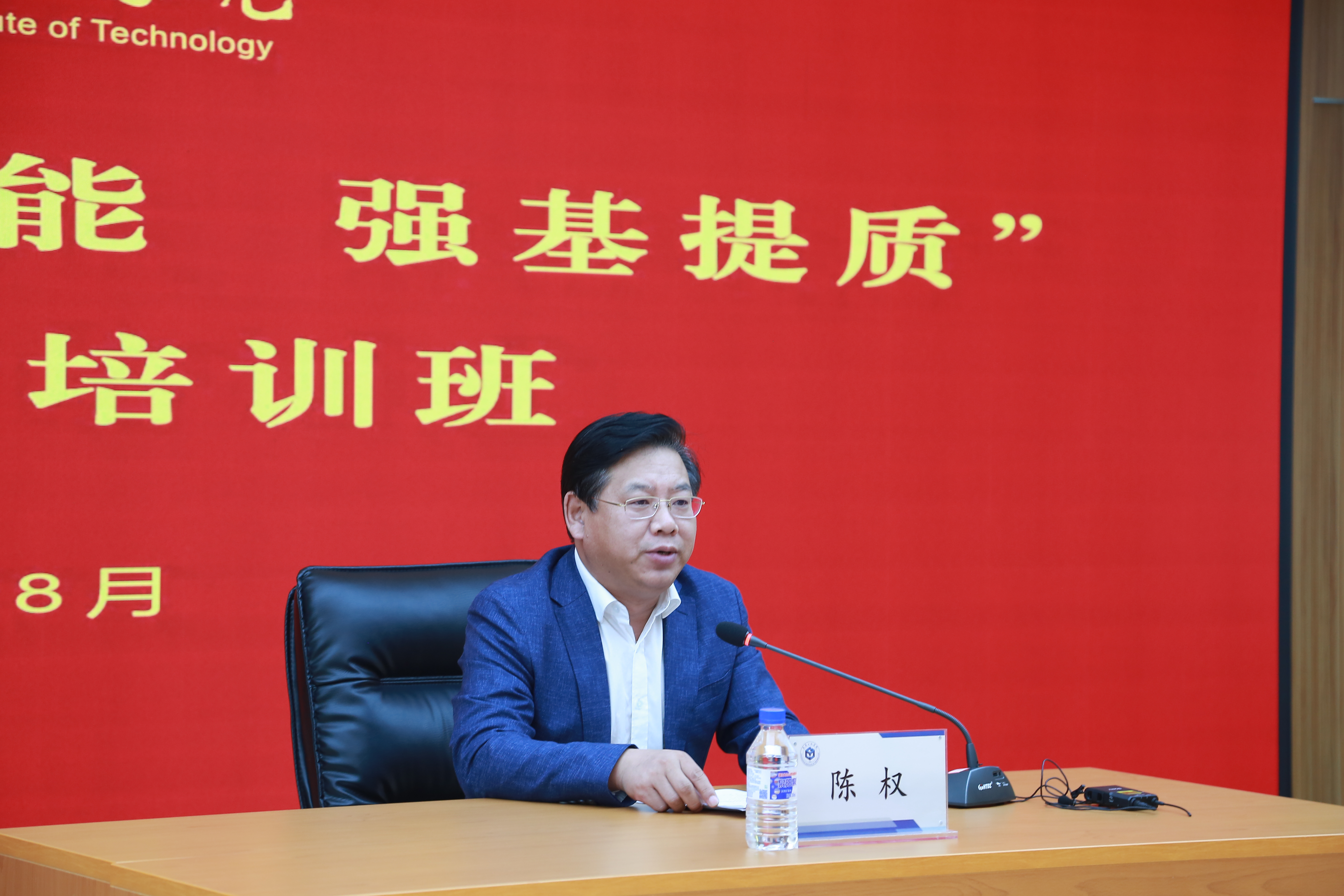 为深入学习贯彻习近平新时代中国特色社会主义思想、党的十九届历次全会精神和省第十二次党代会精神,促进党员领导干部进一步坚定历史自信、增强理论自觉、提高政治能力、强化宗旨意识、激发昂扬斗志、永葆初心使命,培养造就忠诚干净担当的高素质专业化干部队伍, 8月 26 日至 28 日,学校举办了以“铸魂赋能 强基提质”为主题的干部教育培训班。校长陈权,党委副书记刘兆国、杨永生,纪委书记王延博,副校长王朝勇、张邦成、许骏、韩威出席了培训会。培训班由党委副书记杨永生主持。