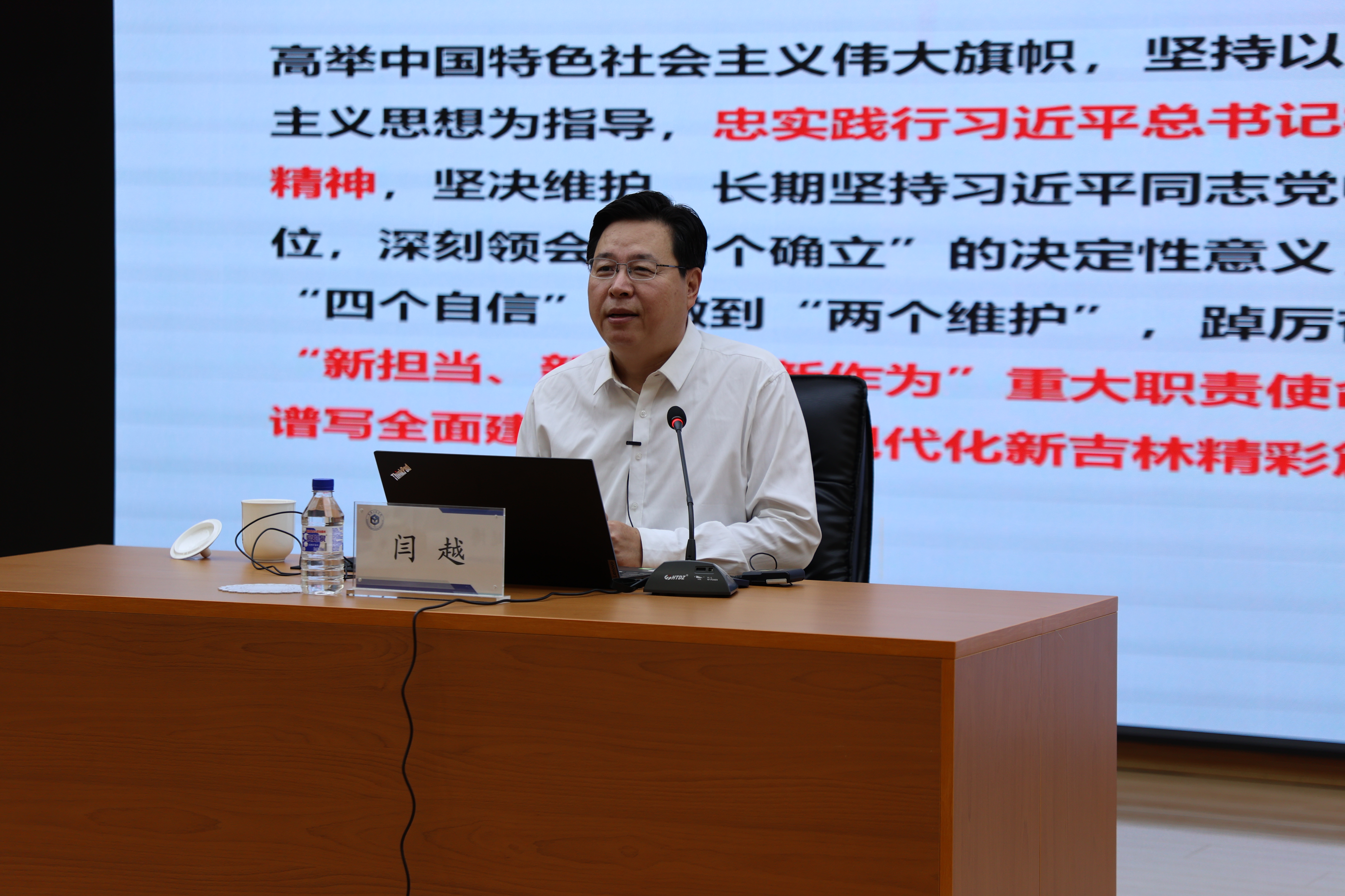 学校邀请省委党校一级巡视员、省委党校副校长闫越教授作开班第一讲,闫越教授以《奋力谱写现代化新吉林精彩篇章》为题,对中国共产党吉林省第十二次代表大会精神进行了解读。