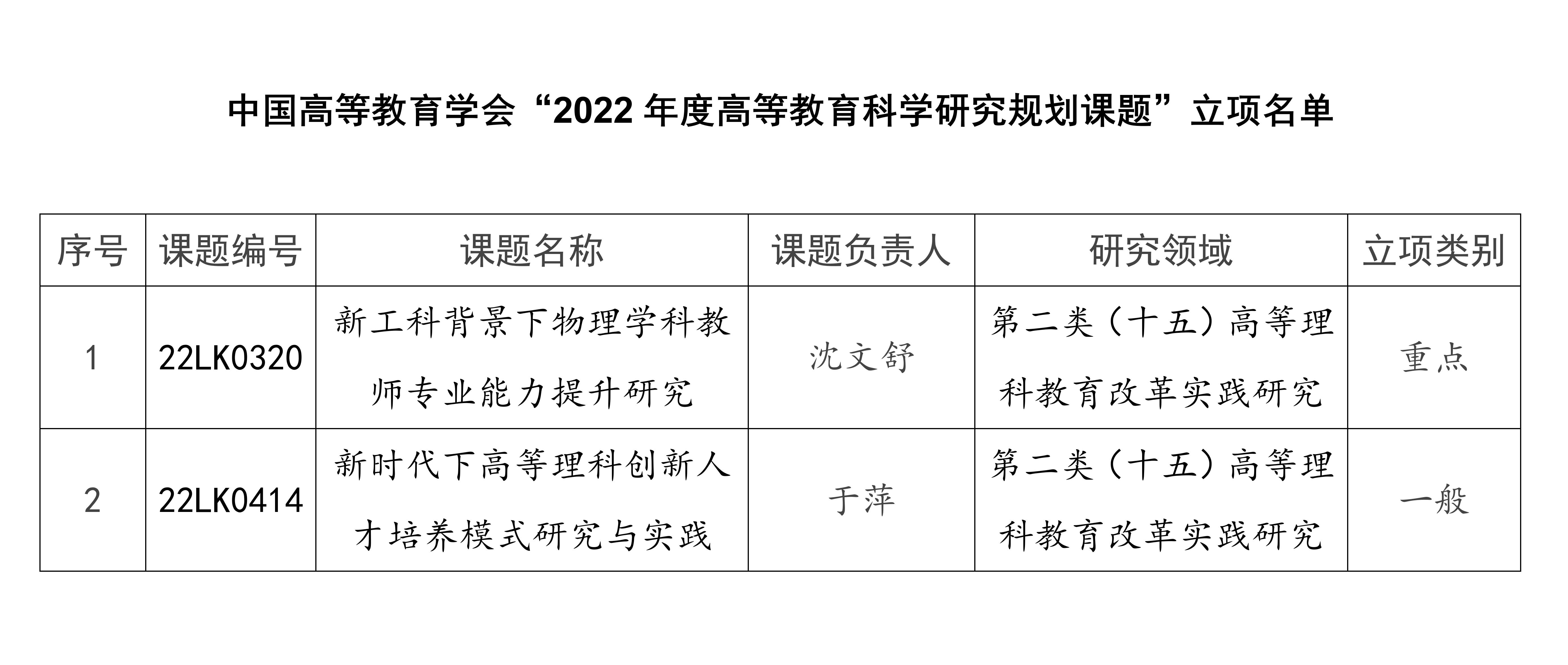 近日,中国高等教育学会公布了2022年度高等教育科学研究规划课题立项名单,我校教师沈文舒、于萍主持申报的课题“新工科背景下物理学科教师专业能力提升研究”“新时代下高等理科创新人才培养模式研究与实践”获批中国高等教育学会“2022年度高等教育科学研究规划课题”。我校获批立项数量居省内同类高校前列。