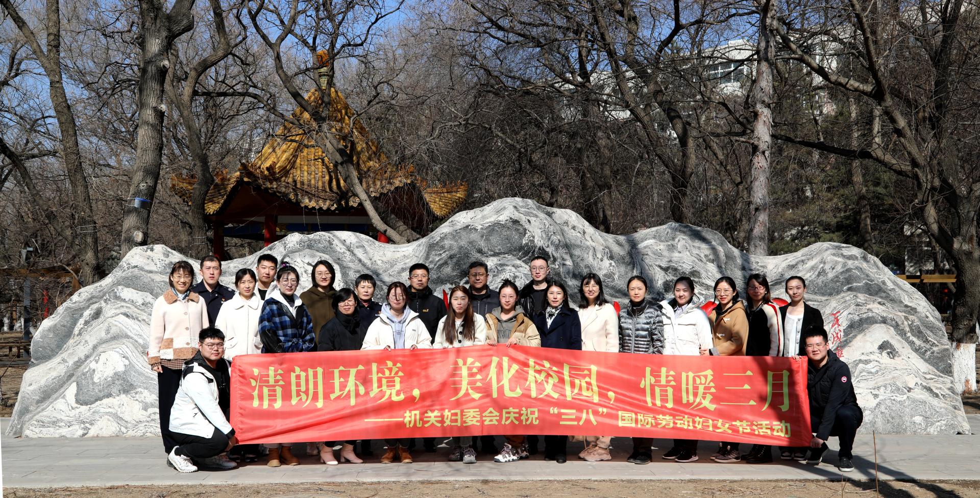 机关妇委会组织开展了“清朗环境,美化校园,情暖三月”主题活动。女教职工们清理了跬园中的枯枝落叶,为美丽长工程的建设贡献“她力量”。