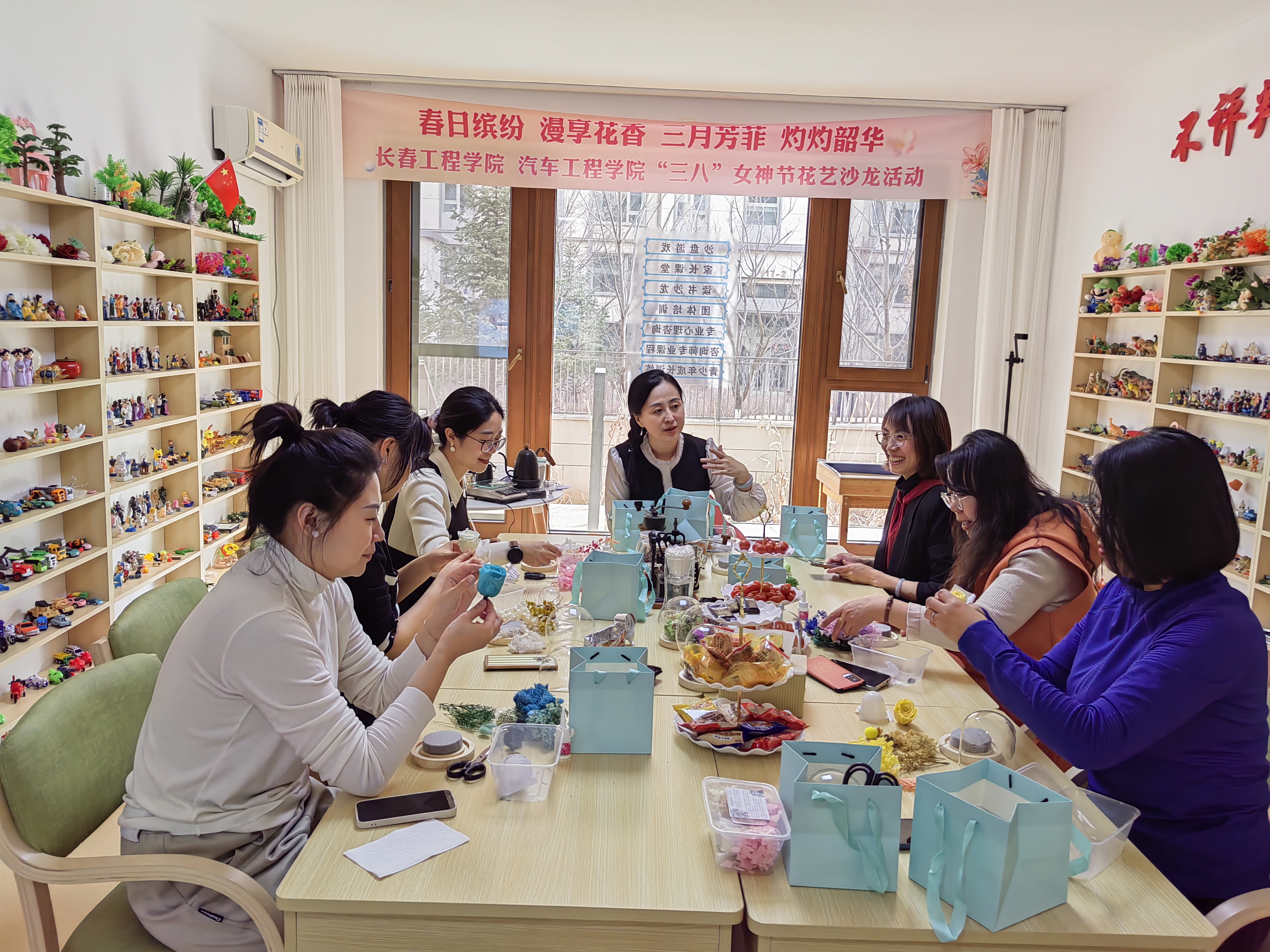 汽车工程学院工会、妇委会开展了“春日缤纷,漫享花香,三月芳菲,灼灼韶华”主题咖啡品鉴、花艺沙龙活动,让女教职工们在轻松、快乐的氛围中迎接自己的节日。