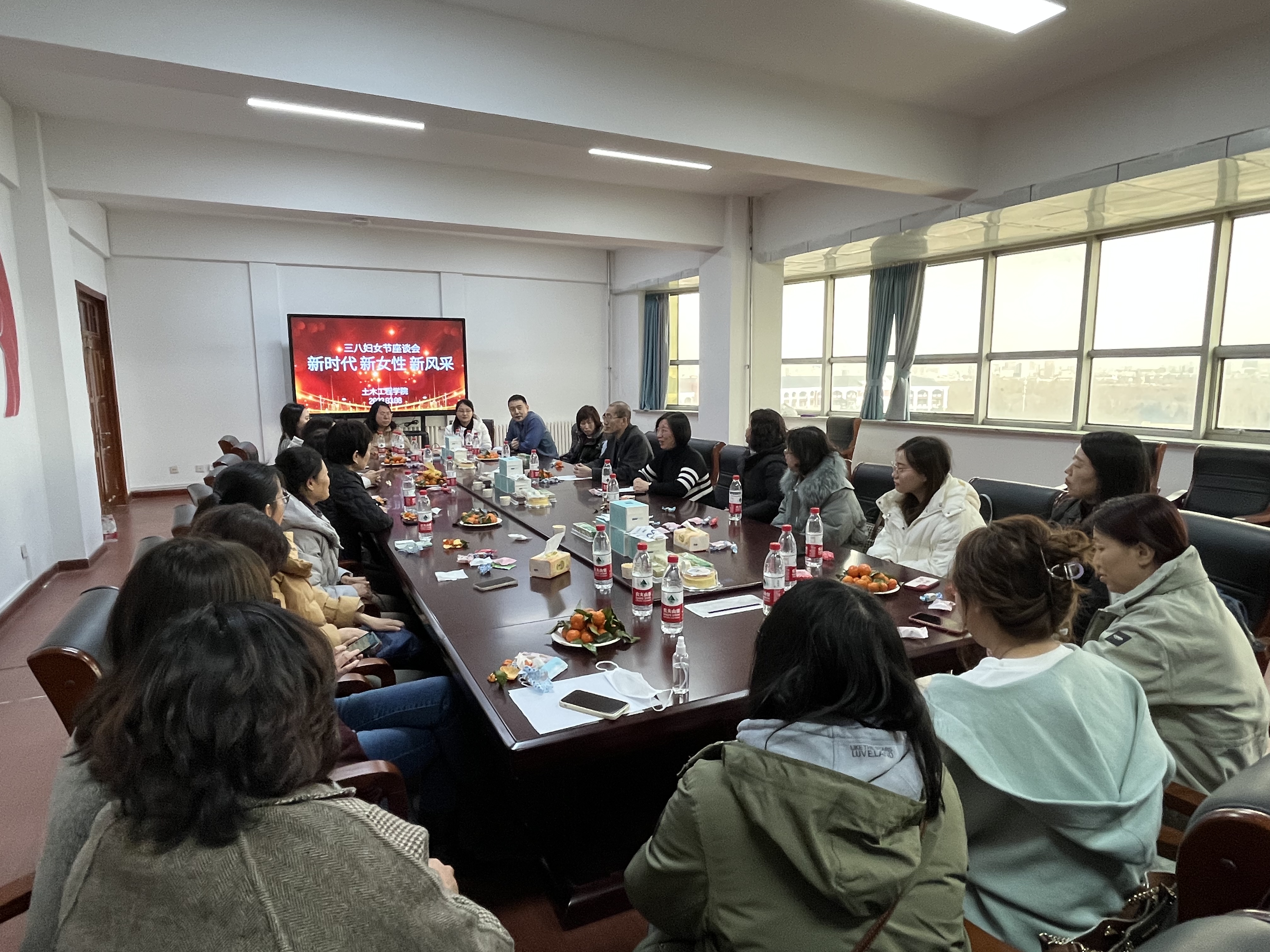 土木工程学院妇委会举办了以“新时代、新女性、新风采”为主题的座谈会,老教师、中年教师和新入职教师代表分享了自己的教学经验和成长经历。参加座谈会的女教师们还分享了自制美食。