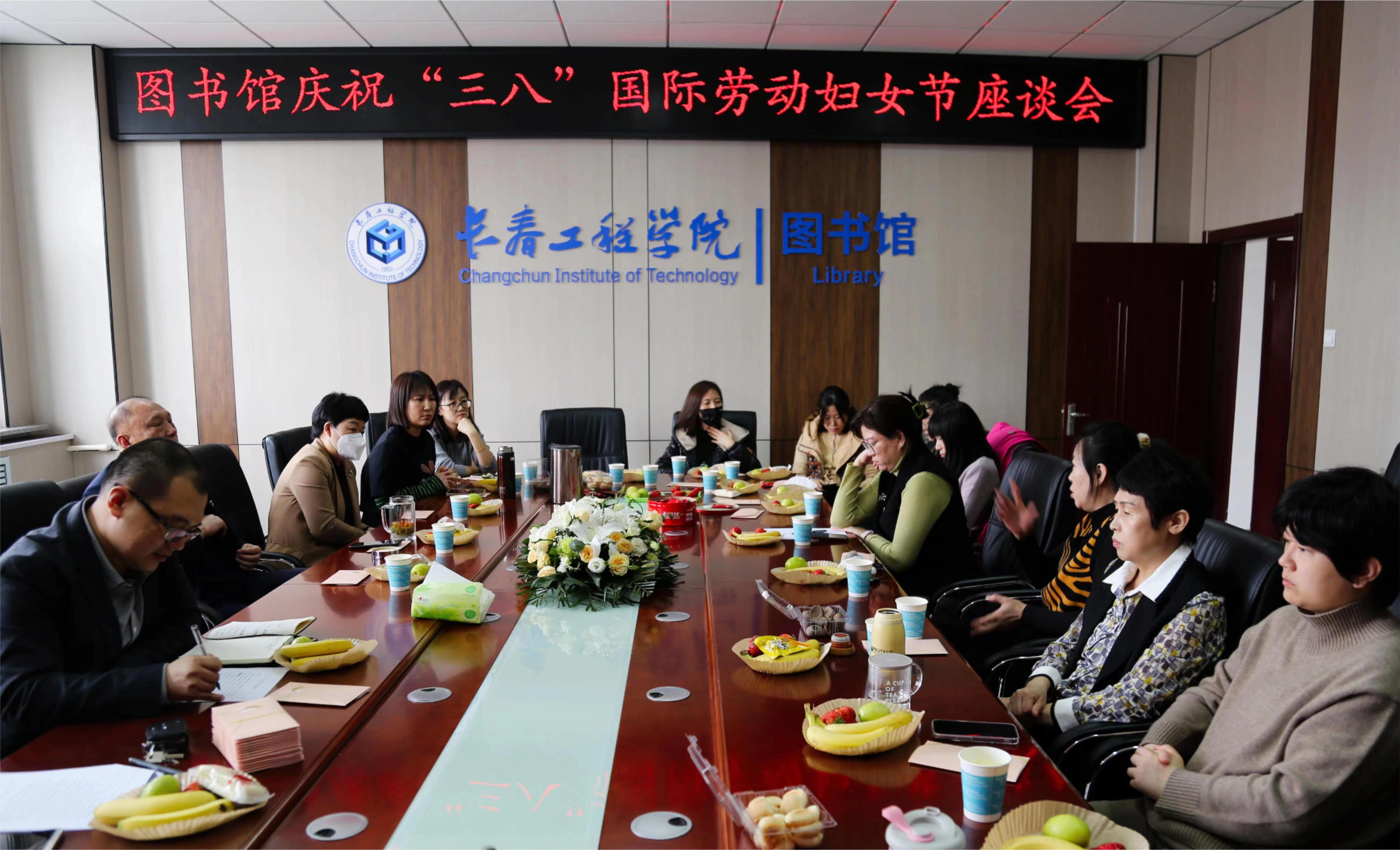 图书馆工会、妇委会举办了“巾帼建功新时代,踔厉奋发新征程”主题座谈会。会议室里,花团锦簇、鲜果飘香,清茶与咖啡的味道萦绕满室。在座女教职工们纷纷敞开心扉、畅所欲言,大家在轻松、热烈的氛围中追忆过往、聚焦当下、展望未来。座谈会后,同事之间的友谊进一步增进,部门的凝聚力进一步增强,大家将以更加饱满的热情和勇毅前行的精神投入工作、拥抱未来。