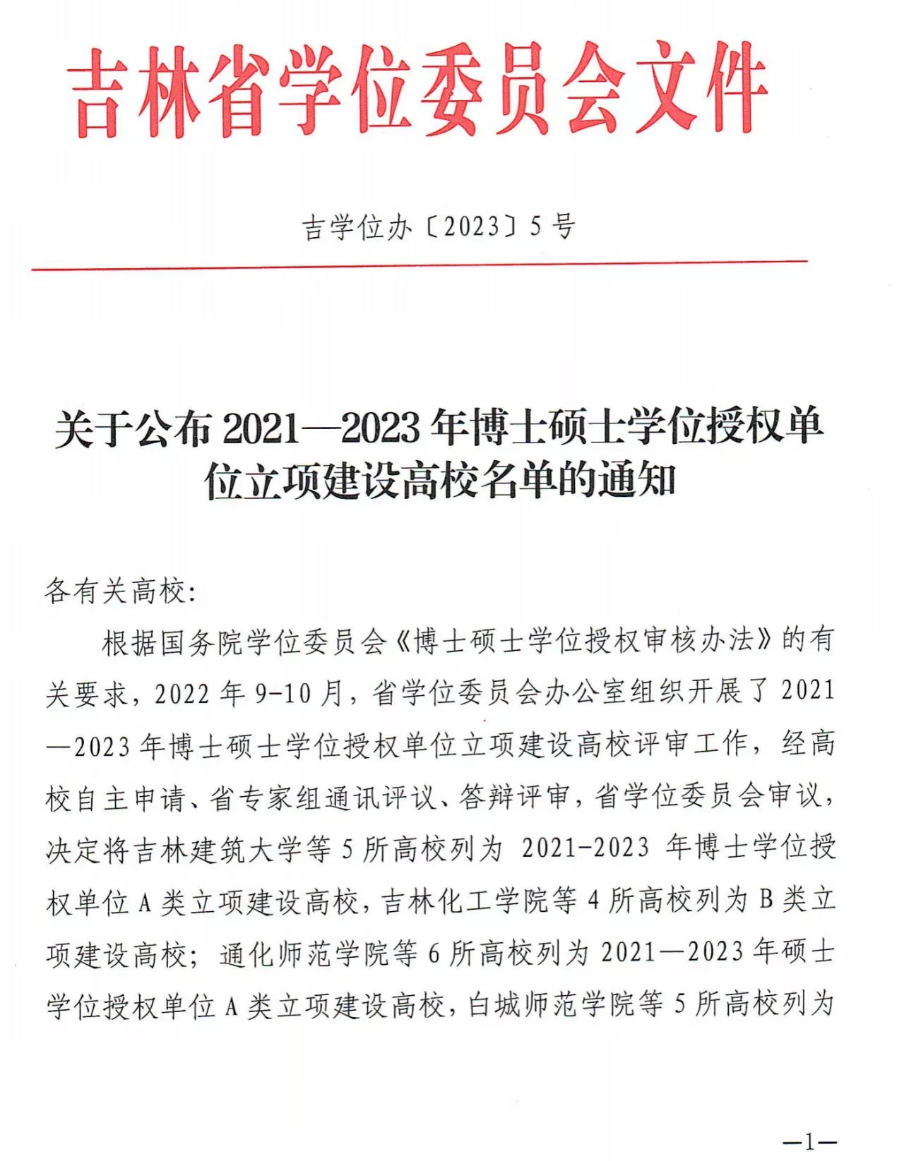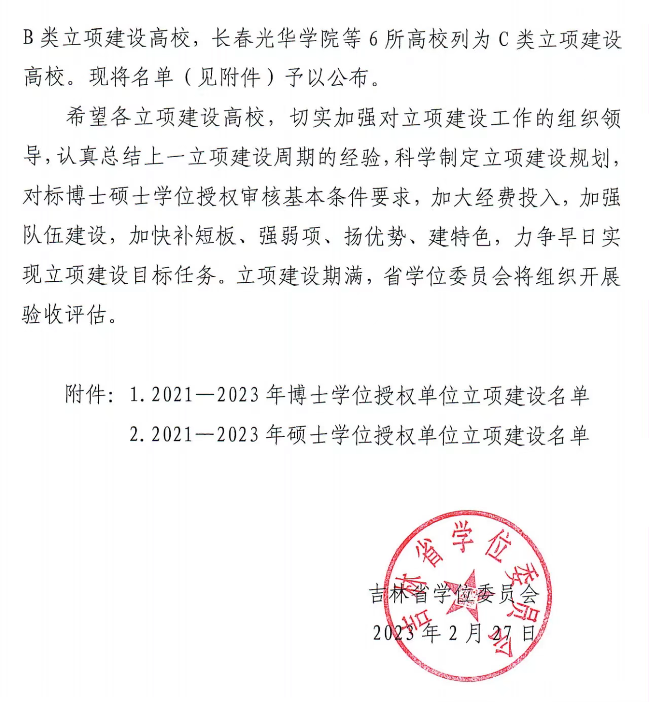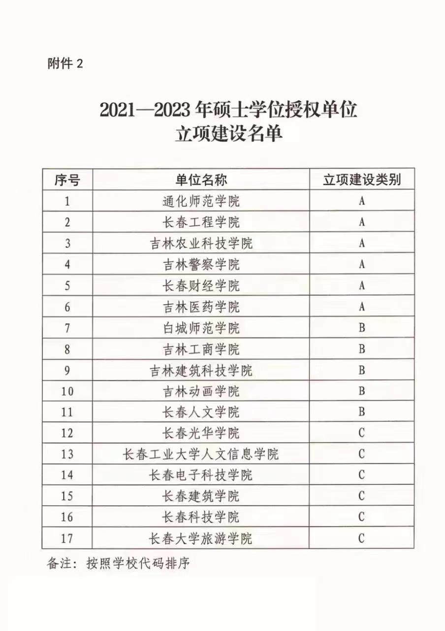 近日,吉林省学位委员会下发《关于公布2021-2023年博士硕士学位授权单位立项建设高校名单的通知》,我校成功获批硕士学位授权单位A类立项建设高校。我校已经连续2次获批硕士学位授权单位A类立项建设高校。