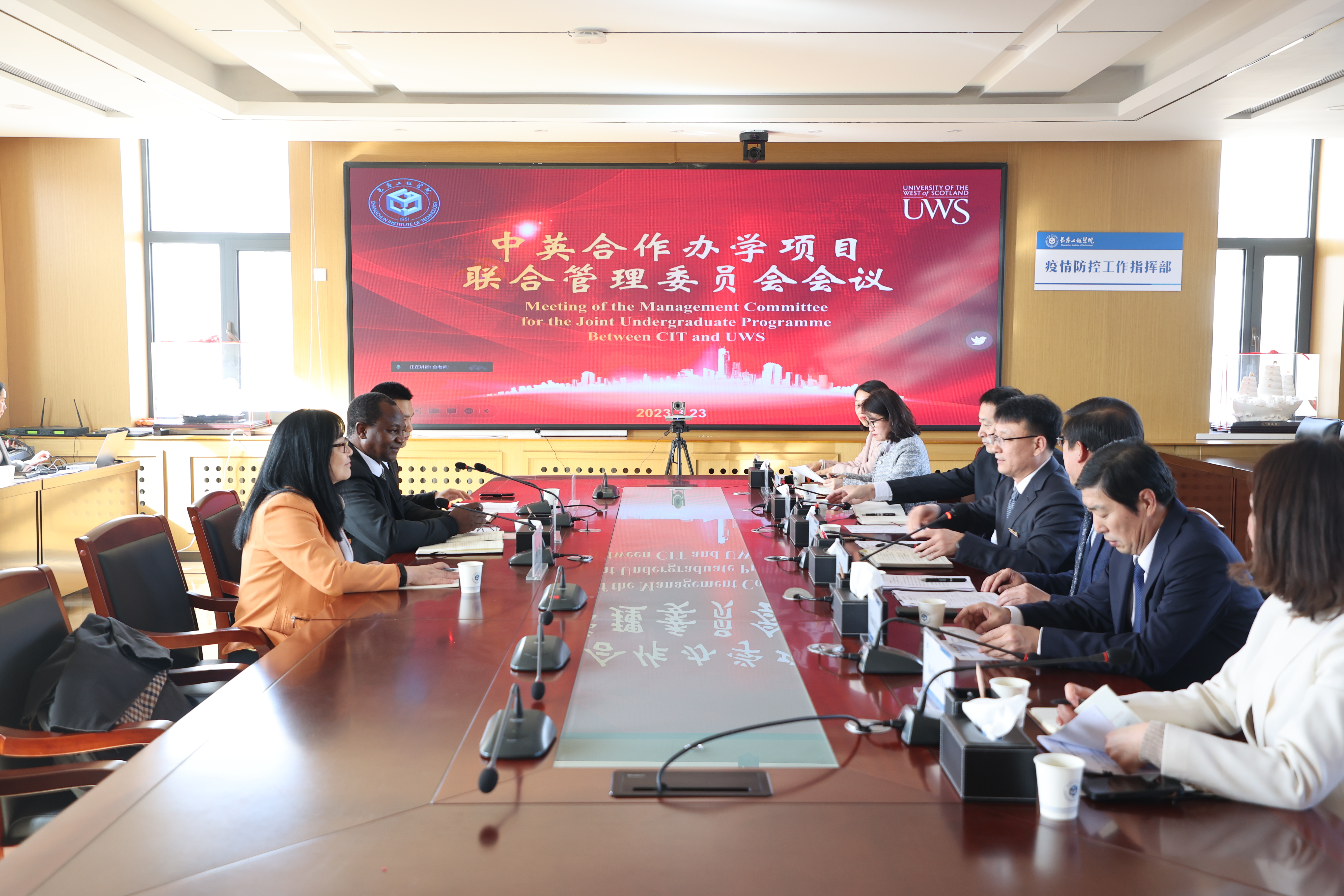 3月23日下午,学校召开中英合作办学项目联合管理委员会会议,会议就我校与英国西苏格兰大学合作举办的土木工程专业、机械设计制造及其自动化专业两个本科教育项目相关工作以及硕士研究生联合培养项目、英语专业领域合作等相关工作进行广泛而深入的研讨。