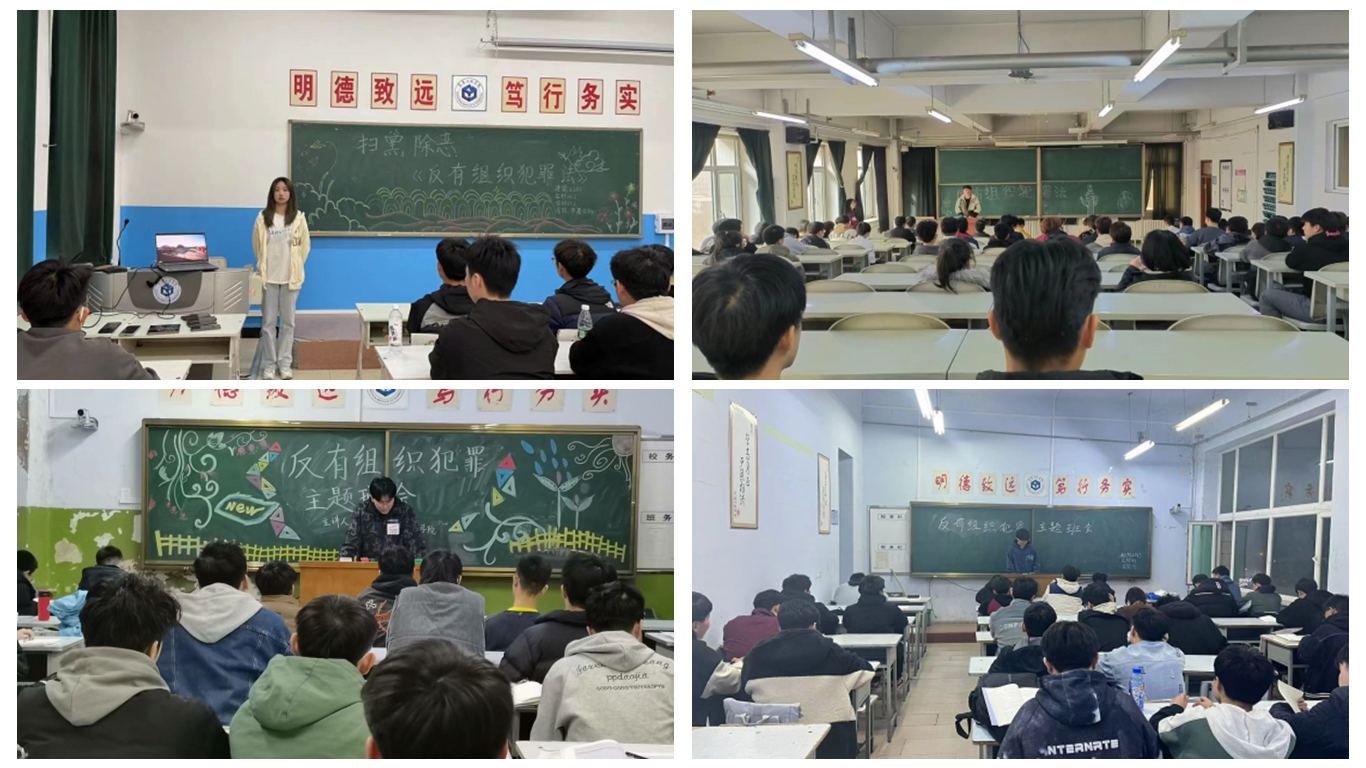 保卫处与学生工作处积极组织开展了《中华人民共和国反有组织犯罪法》普法宣传主题班会、“听青年之声,行维权之责”签字活动、以“反对组织犯罪,净化社会风气”为主题的观影活动等,此外,通过制作宣传板、制作公众号推文等形式扩大宣传范围、增强宣传效果。