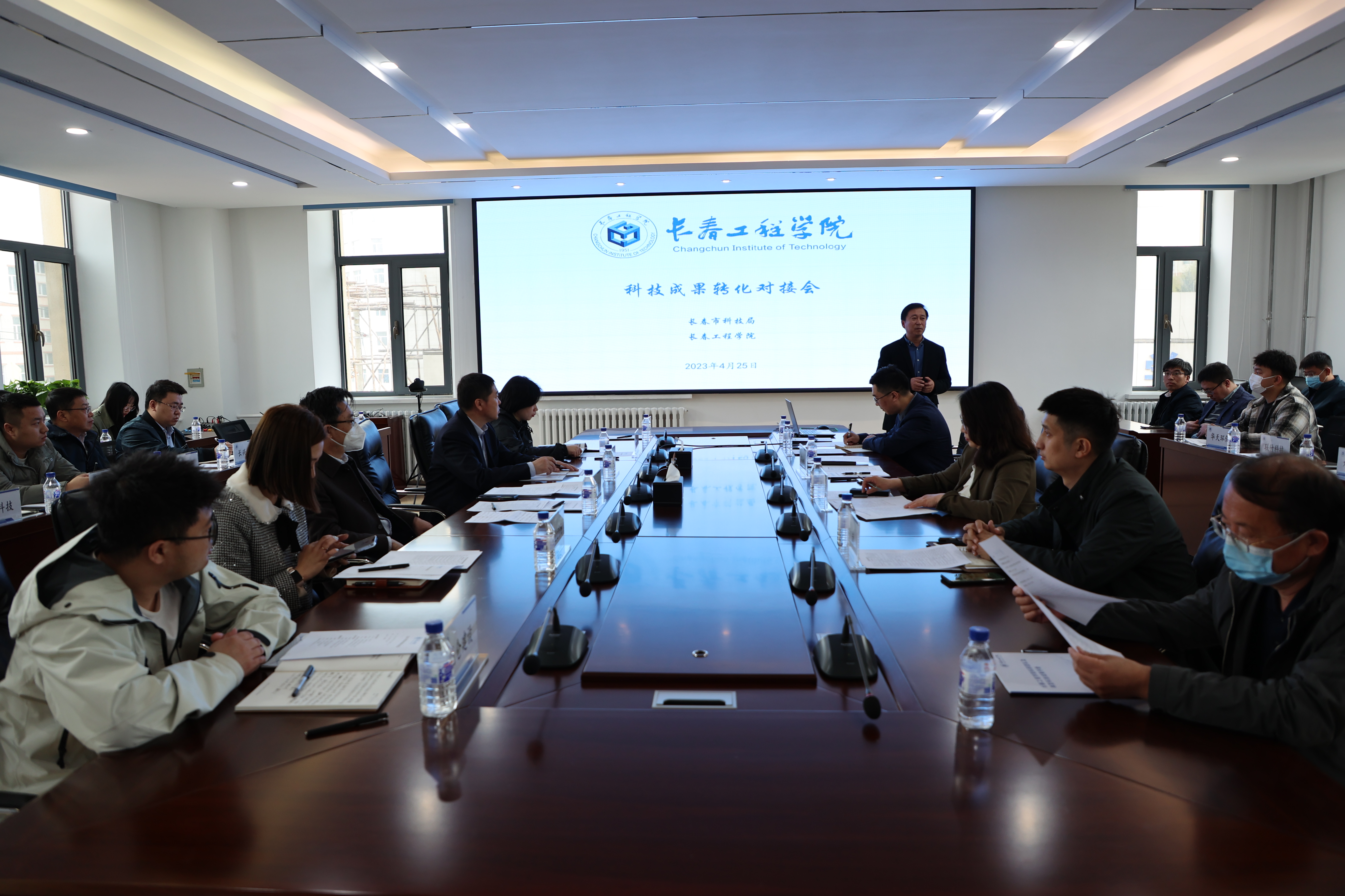 会议现场,土木工程学院、水利与环境工程学院介绍了本学院科技成果转化情况,各成果负责人向投融资机构和企业进行了技术路演。通过座谈交流,初步形成了企业和学校部分成果的对接意向,主要覆盖了数字吉林建设、智慧建筑、先进制造、生态环保和新材料领域。