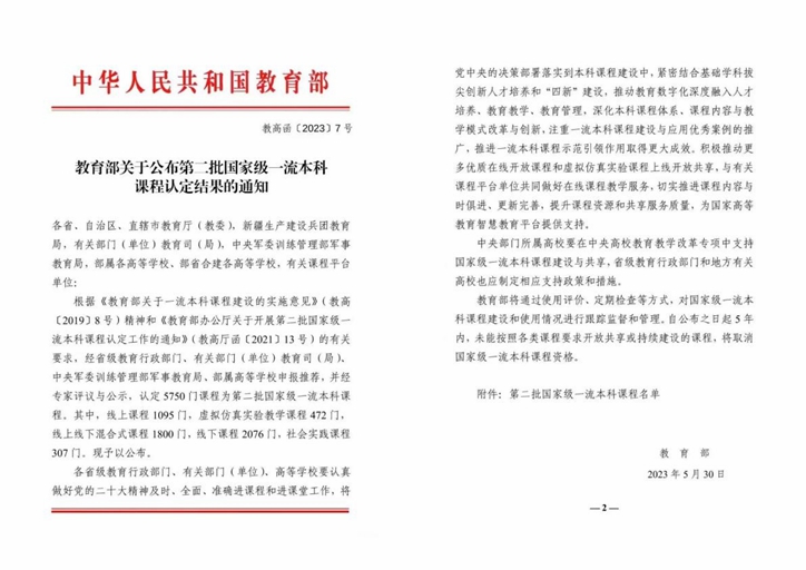近日,教育部公布了第二批国家级一流本科课程认定结果,我校共有4门课程被认定为国家级一流本科课程,其中线下一流课程2门,分别为《钢结构基本原理》《电力电子技术》;线上线下混合式一流课程2门,分别为《水工建筑物》《单片机原理及应用》。本次获批国家级一流本科课程实现了学校一流课程建设的历史性突破,体现了学校在课程建设方面取得的新成效。