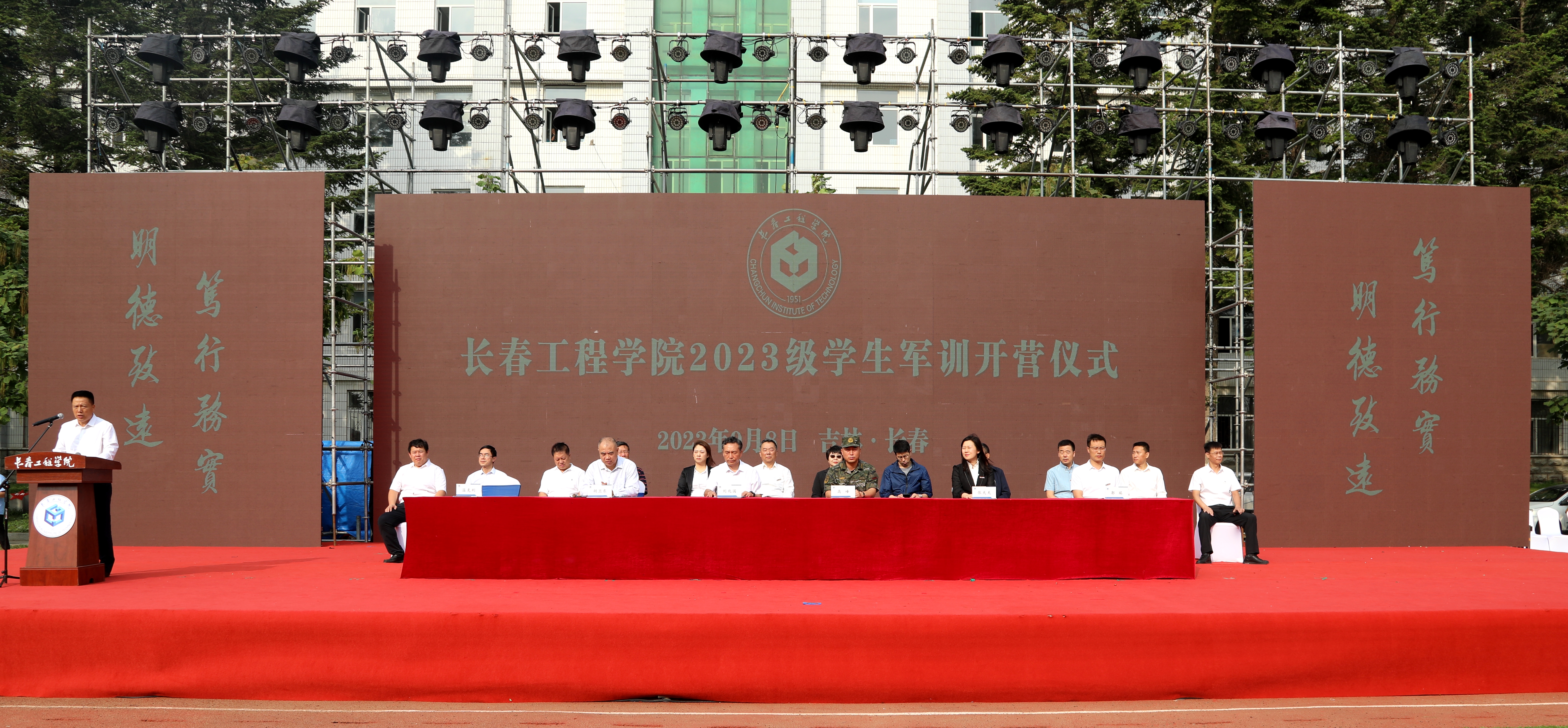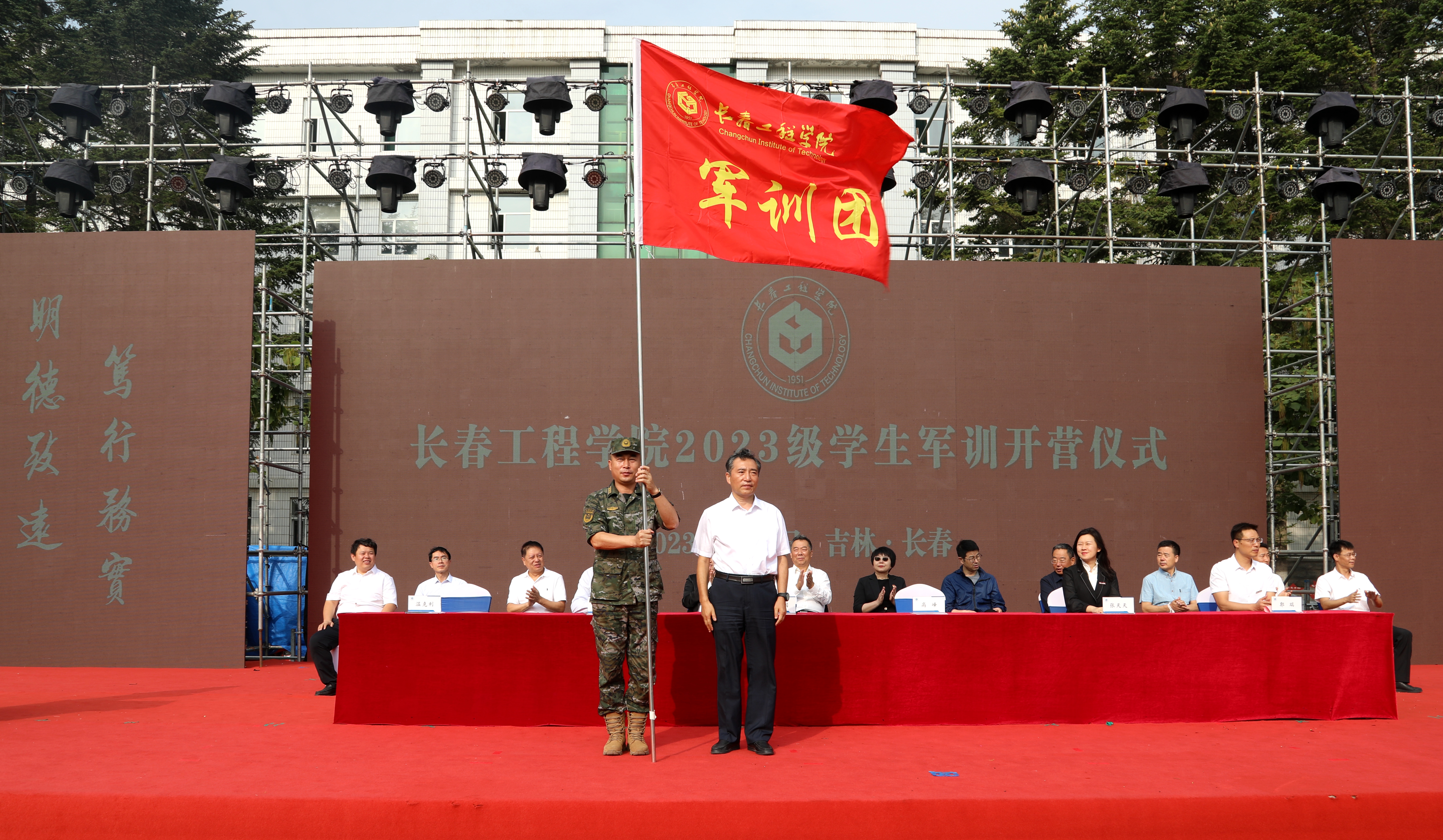 晨起军歌冉旭日,晚归健步挂流星。9月8日上午,学校2023级新生军训开营仪式在学校湖东、湖西两个校区同时举行。党委副书记刘兆国、武警长春支队参谋长高峰出席湖东校区军训开营仪式。副校长张邦成、武警长春支队副中队长石涛出席湖西校区军训开营仪式。两个校区的军训开营仪式分别由学生工作处处长温克利和副处长戴钰主持。