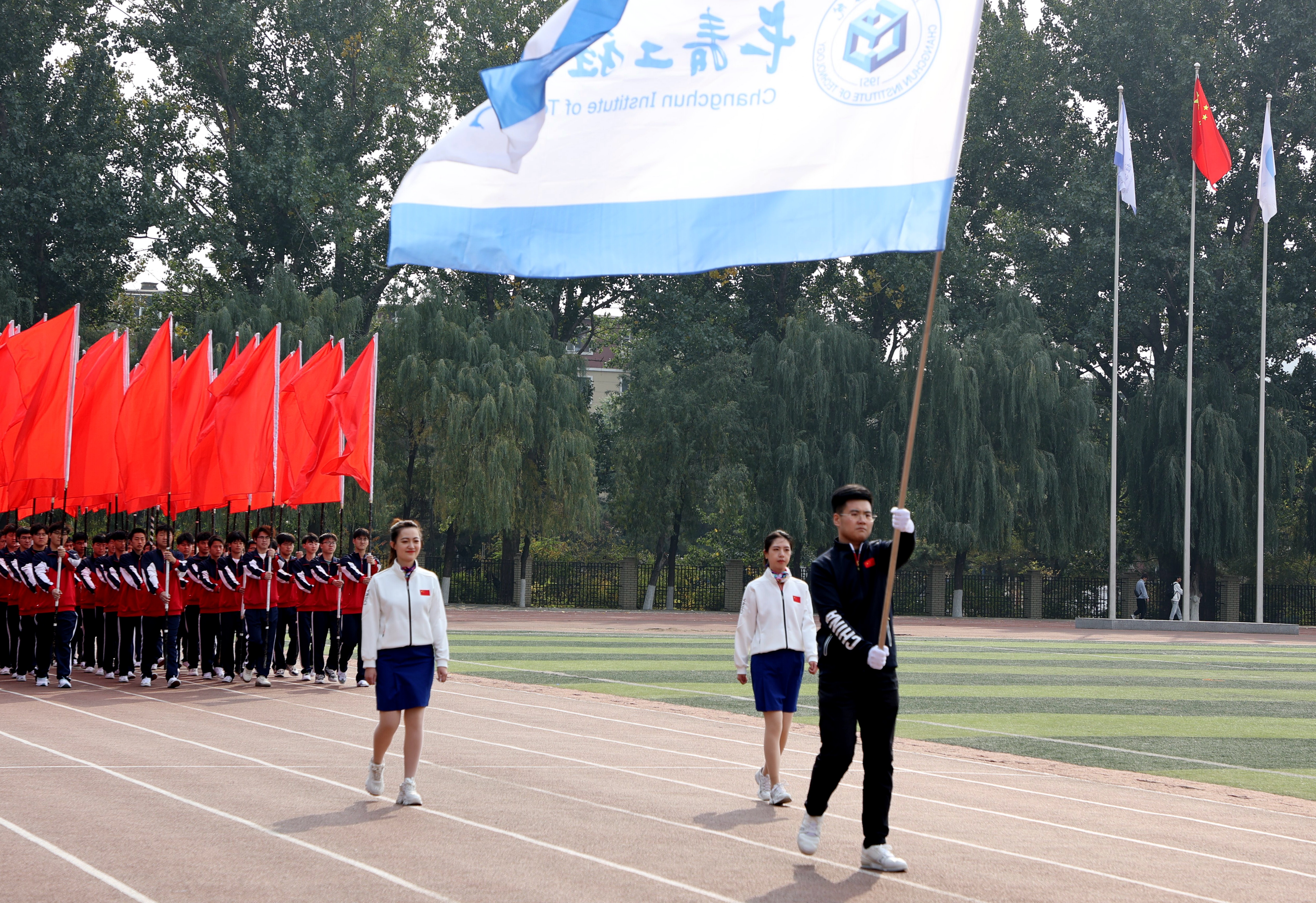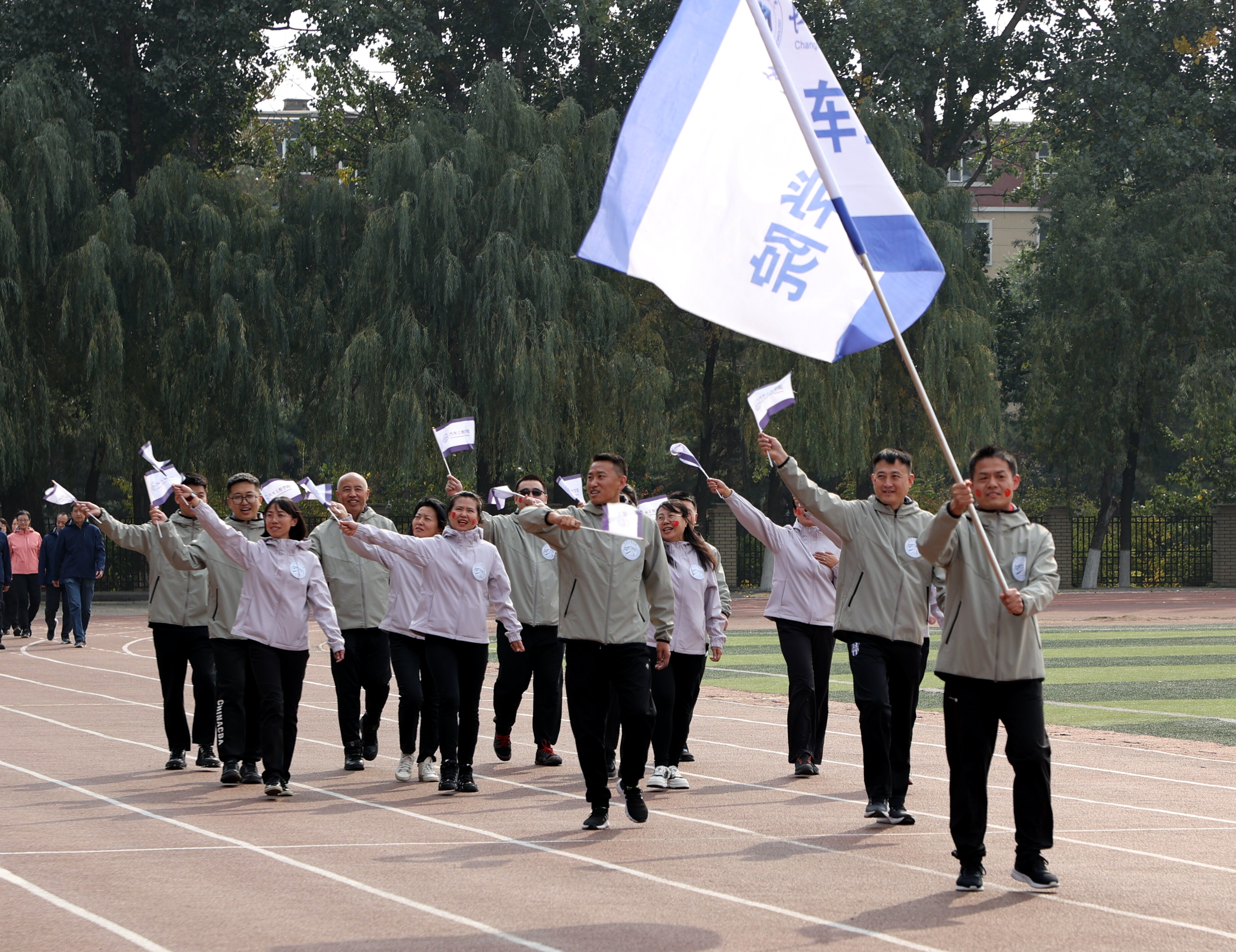 10月13日下午,学校第四届教职工趣味运动会在湖西校区田径运动场隆重举行。学校领导陈权、王延博、王朝勇出席活动。