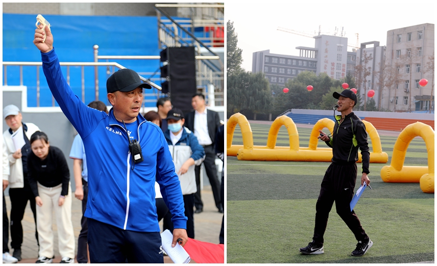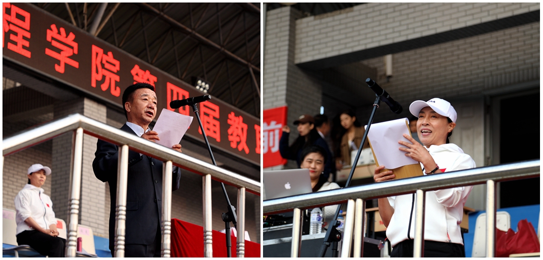 在开幕式上,总裁判长、体育教研部副主任于洪涛代表全体裁判员宣誓;土木工程学院张维康代表全体运动员宣誓。在闭幕式上,总裁判长、体育教研部副主任于洪涛宣布了竞赛成绩,精神文明和文艺表演评选组组长、妇委会主任温鹏宣读了精神文明奖和文艺表演奖获奖名单。本届教职工趣味运动会的开幕式和闭幕式均由校工会主席舒英利主持。