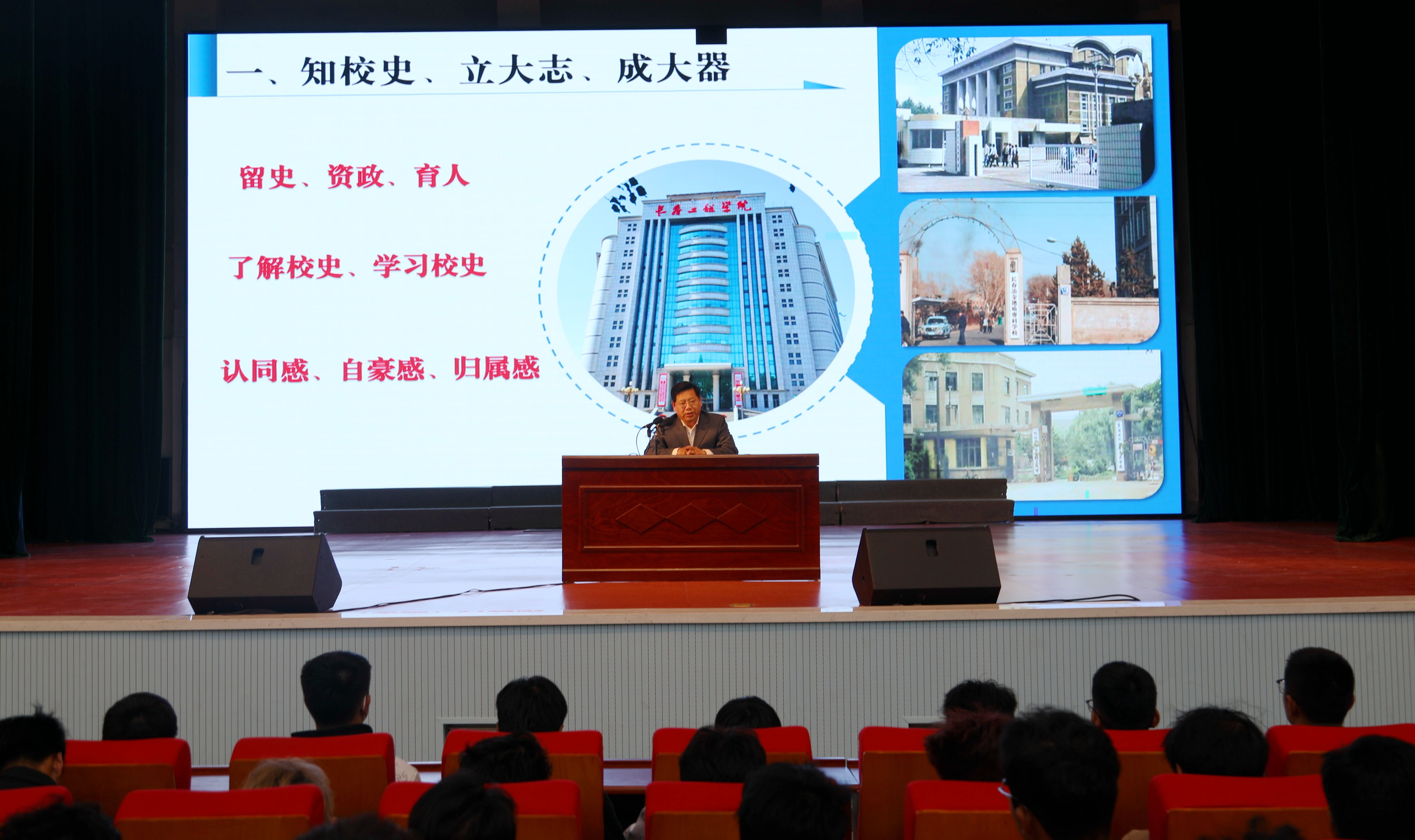 校长陈权以“传承长工程精神,筑工程兴国梦”为主题,先是从历史维度,向学生讲解了学校的历史以及办学的优势特色,引导大一年级新生知校史、立大志、成大器,树立起对学校以及所学专业的自信;又从现实维度,要求学生坚定理想信念,树立家国情怀,涵育道德情操,自律自省,强化学习能力,提升工程素质。