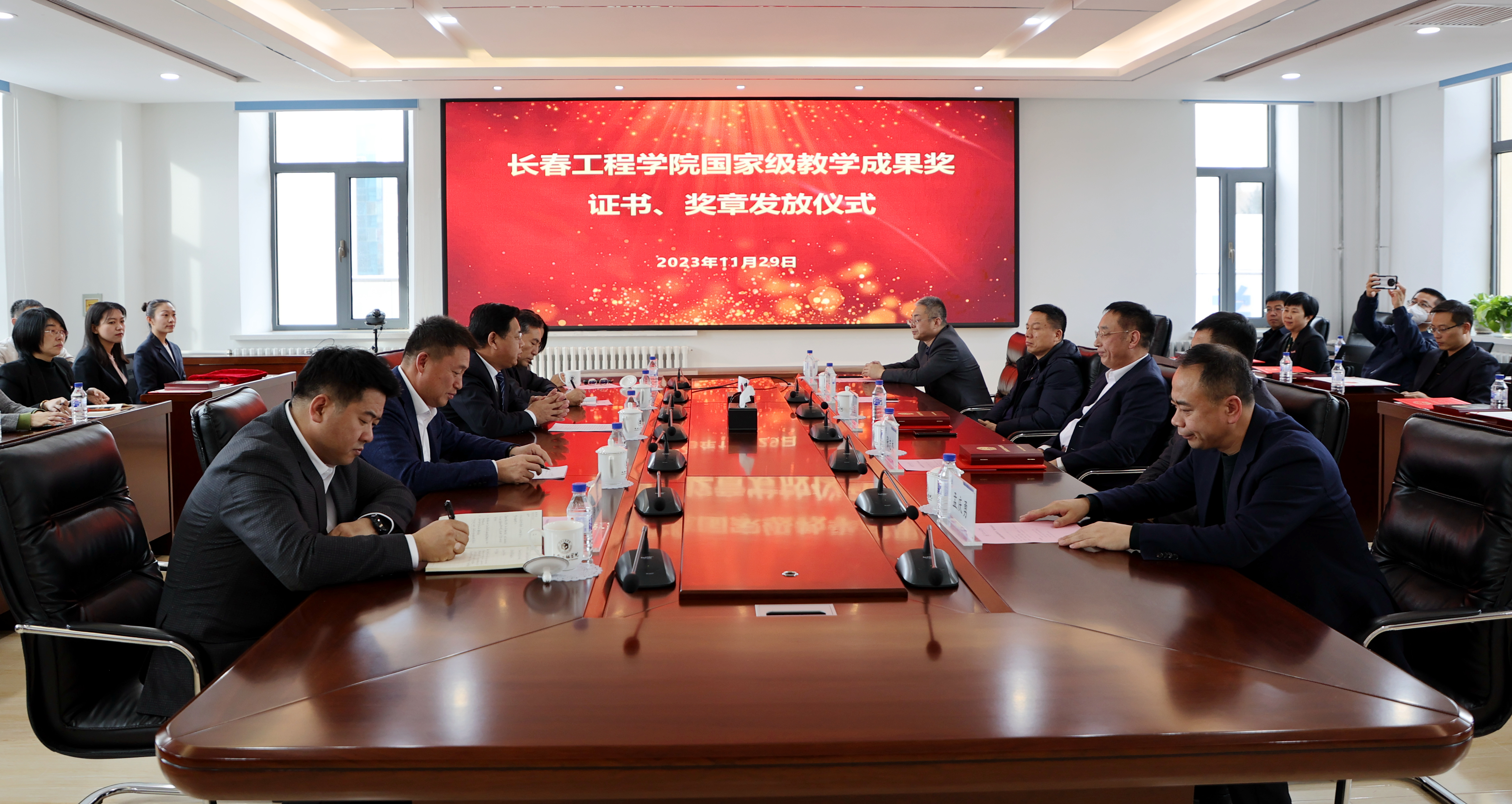 2023年7月24日,教育部发布了《关于批准2022年国家级教学成果奖获奖项目的决定》,我校参评的项目《应用型高等工程教育“两面向、三融合、五共同”人才培养模式研究与实践》荣获了二等奖。近日,学校收到教育部颁发的国家级教学成果奖获奖证书和奖章。为了表彰先进,并激励全校师生进一步在马博(中国)事业上攻坚克难、再攀高峰,11月29日,学校在第三会议室对获奖团队进行表彰。学校领导陈权、刘兆国、张邦成、许骏、韩威及党委常委参加了表彰仪式。仪式由张邦成副校长主持。