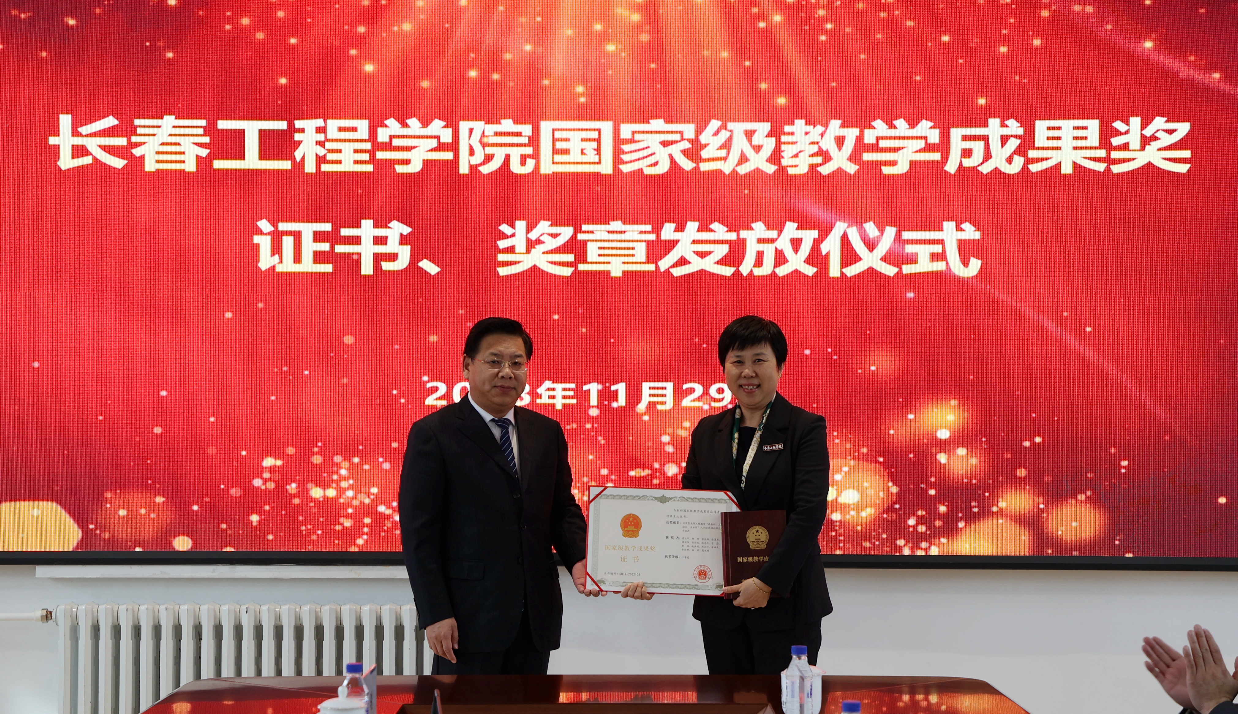 在仪式上,党委书记陈权对获奖团队表示了祝贺,他指出,国家级教学成果奖是党和政府对教育工作者的最高鼓励和认可。这次获奖为学校的发展注入了强大的精神动力,增强了我们把学校办成国内一流应用型大学的志气和底气。