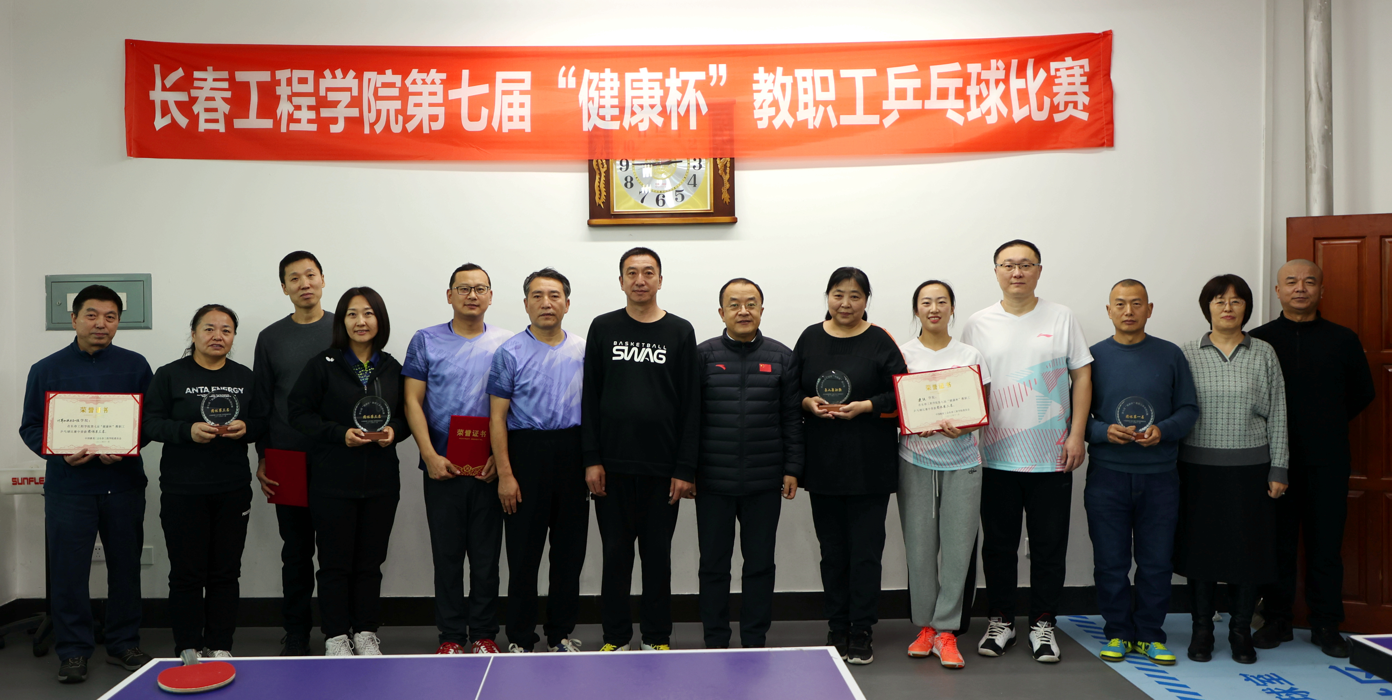 为丰富和活跃我校教职工的业余文化生活,加强乒乓球爱好者之间的交流,12月13日,由校工会、体育教研部主办,教工乒乓球协会承办的学校第七届“健康杯”教工乒乓球团体及个人决赛在教工活动中心乒乓球活动室圆满落幕。
