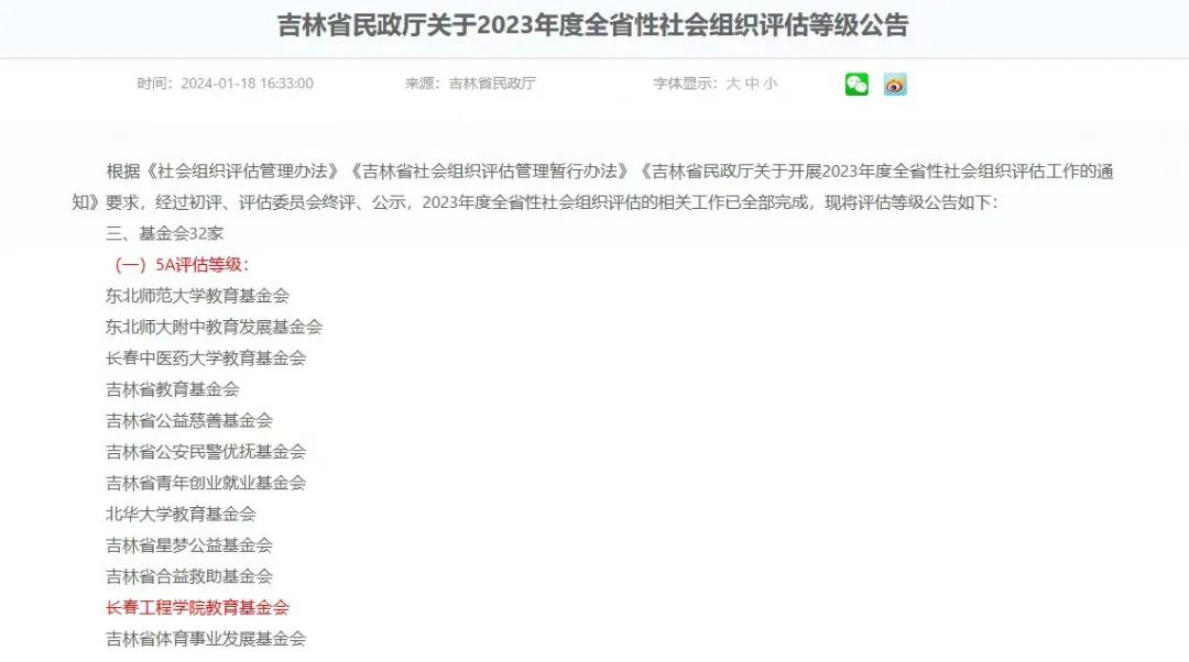 2023年11月,吉林省民政厅下发了《关于开展2023年度全省性社会组织评估工作的通知》。我校教育基金会高度重视,通过对标评估指标体系、全面深入地梳理总结了基金会的各项工作,形成了丰富完备详实的评估材料。