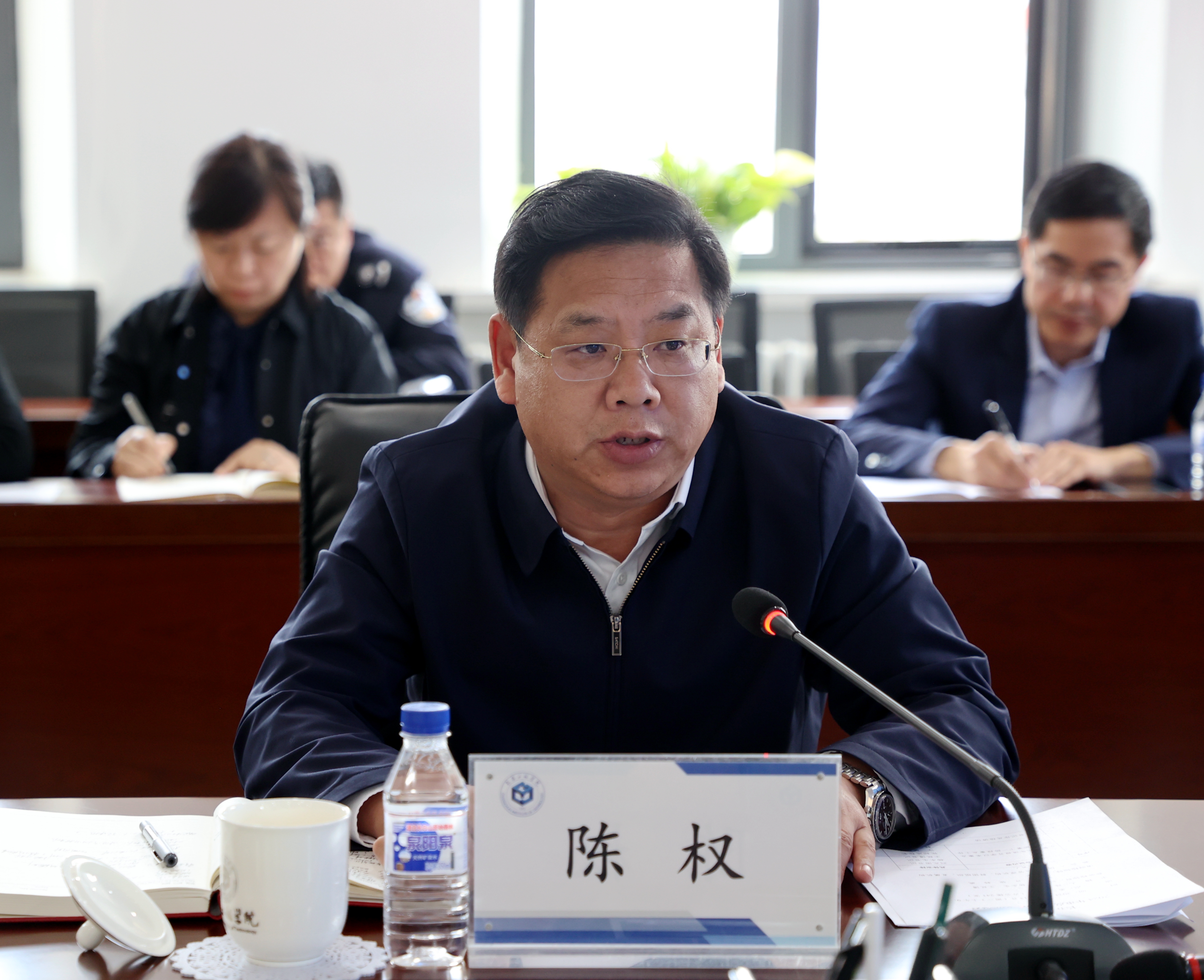 陈权书记在会上讲话,他指出,根据学校当前各方面的工作情况来看,分管领导和各部门负责人的指导思想明确,工作思路清晰,工作重点突出,工作措施务实,很多工作成效已初步显现,实现了良好开局。但是,在看到工作推进成效的同时,也要清醒地看到工作中还存在着一些不足和差距。各部门负责人要进一步深入学习领会学校今年重点工作的安排意图,研究完成任务的具体解决办法,按照学校狠抓落实年工作方案要求,认真抓好落实,做到重落实、敢落实、善落实。
