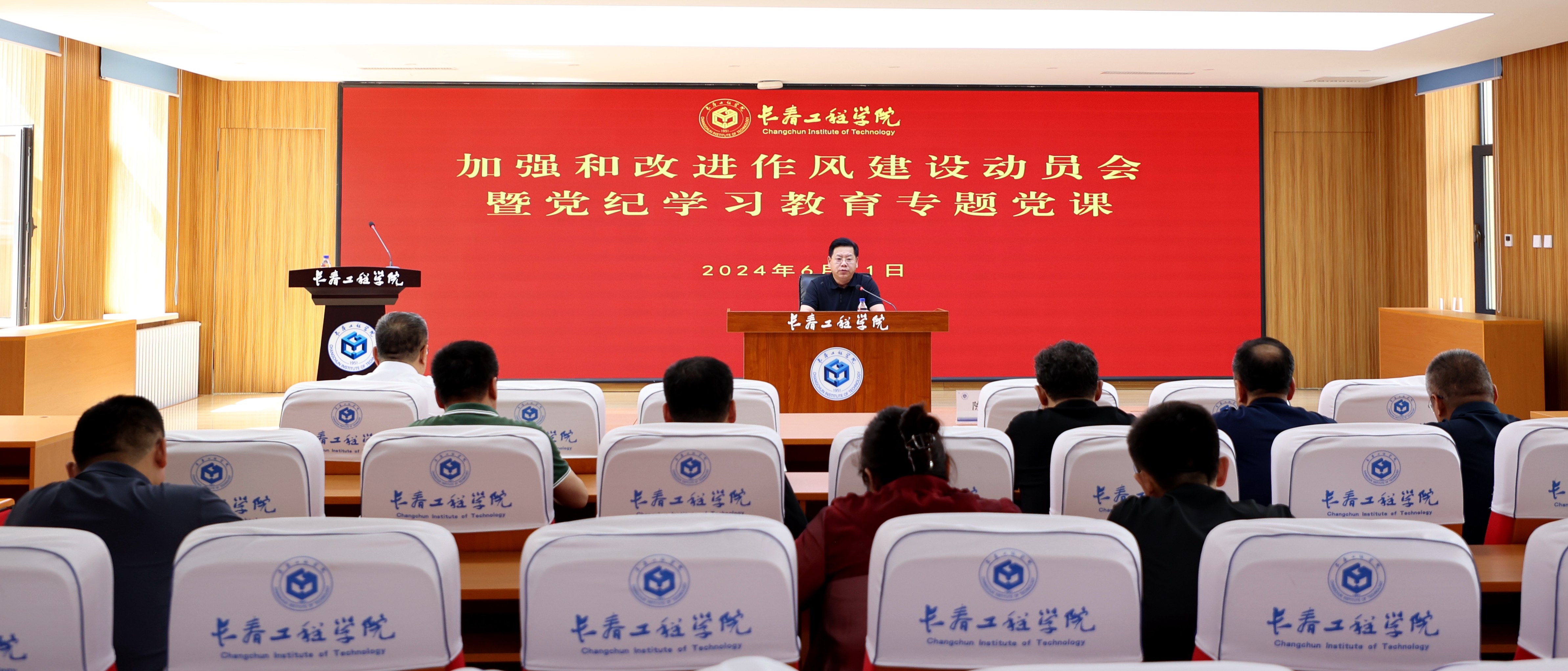 6月11日下午,学校召开加强和改进作风建设动员会暨党纪学习教育专题党课。学校党委书记陈权讲授党纪学习教育专题党课,会议由党委副书记杨永生主持。