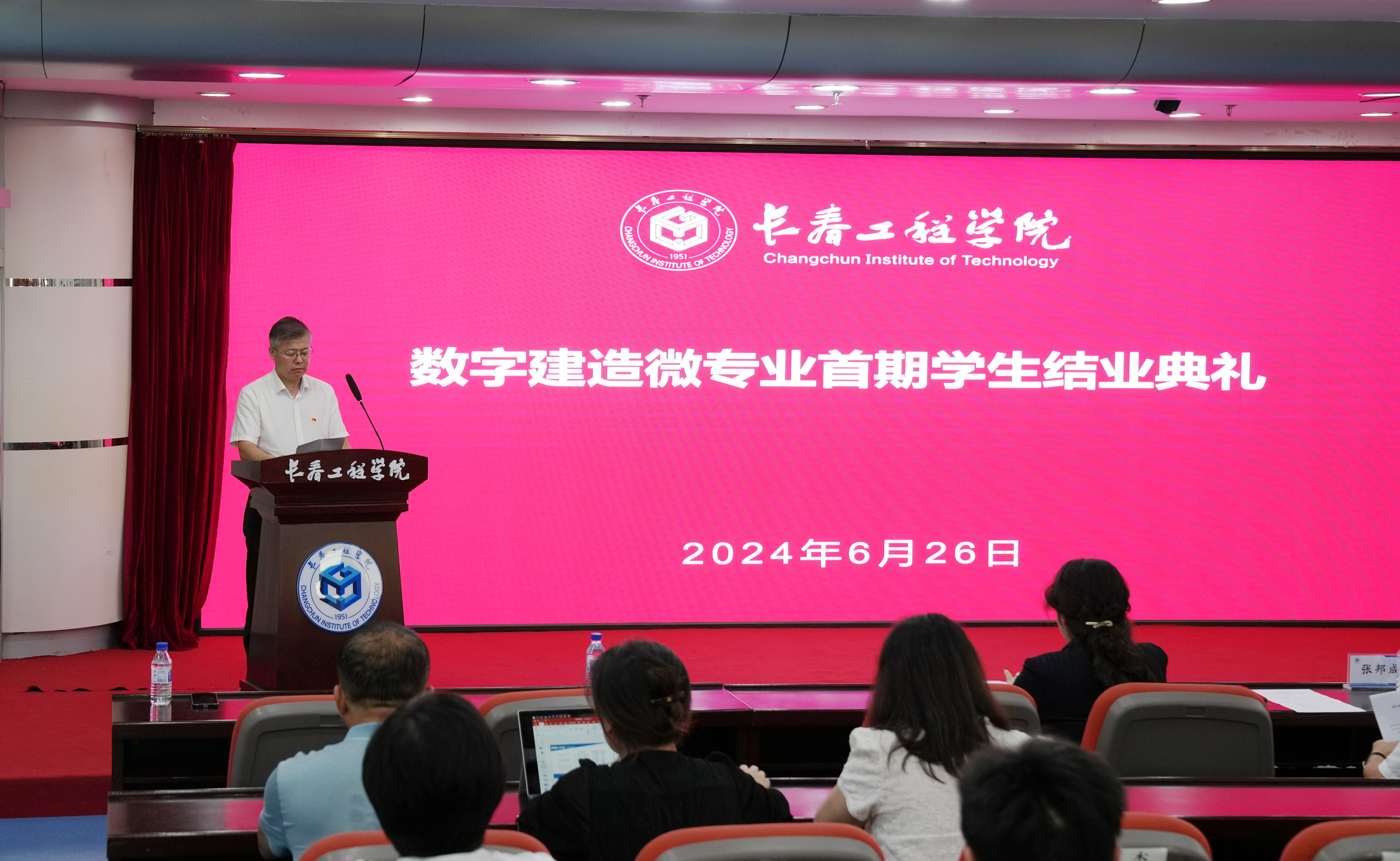 张邦成副校长在结业典礼上讲话,他肯定了数字建造微专业作为我校首批批准设立、首个正式开班授课、首期圆满结业的微专业在创新人才培养机制探索中取得的良好效果,对顺利结业的同学们表示祝贺。他指出,学校现已推荐具有优势特色的5个微专业参评吉林省教育厅微专业试点项目遴选,学校将进一步加强微专业建设的规划与指导,总结提炼典型经验和做法,优化微专业建设。他希望,首期结业的同学们能够学以致用,知行合一,与所学专业知识融合,解决实际问题;希望参加第二期微专业的同学们始于热爱,终于坚持,快速融入,高效学习,积极思考,拓宽视野,实现快速成长;希望各教学单位在微专业建设工作中,能够继续秉持育人初心,深化产教融合、推进科教融汇,优化人才培养结构,提升微专业课程的内涵建设,打破学院壁垒,加强合作,共享优质教学资源,为学生提供更多的跨学科、跨领域、跨文化的学习机会,提升微专业教学质量,提高人才培养质量,推动学校马博(中国)高质量发展。