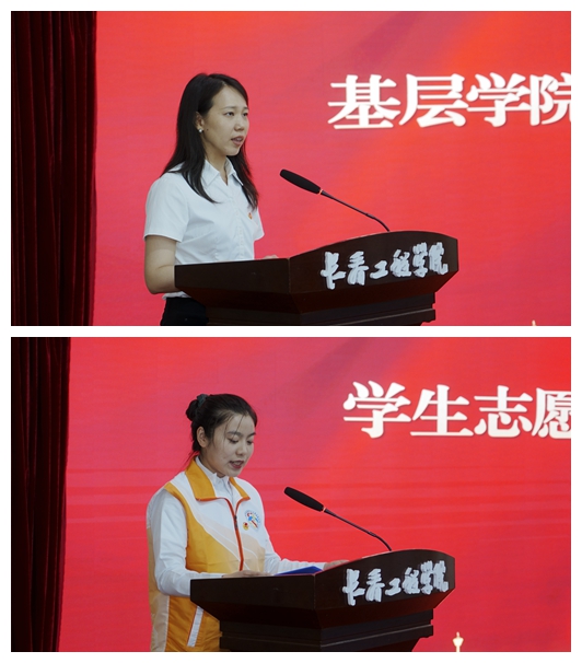 仪式上,校团委书记张天天公布2024年暑期“三下乡”社会实践重点团队名单,校团委教师张皓然介绍2024年暑期“三下乡”社会实践活动安排。电气与信息工程学院团委书记于文慧、勘查与测绘工程学院学生李鑫汇作为代表发言。随后全体志愿者代表共同宣誓。