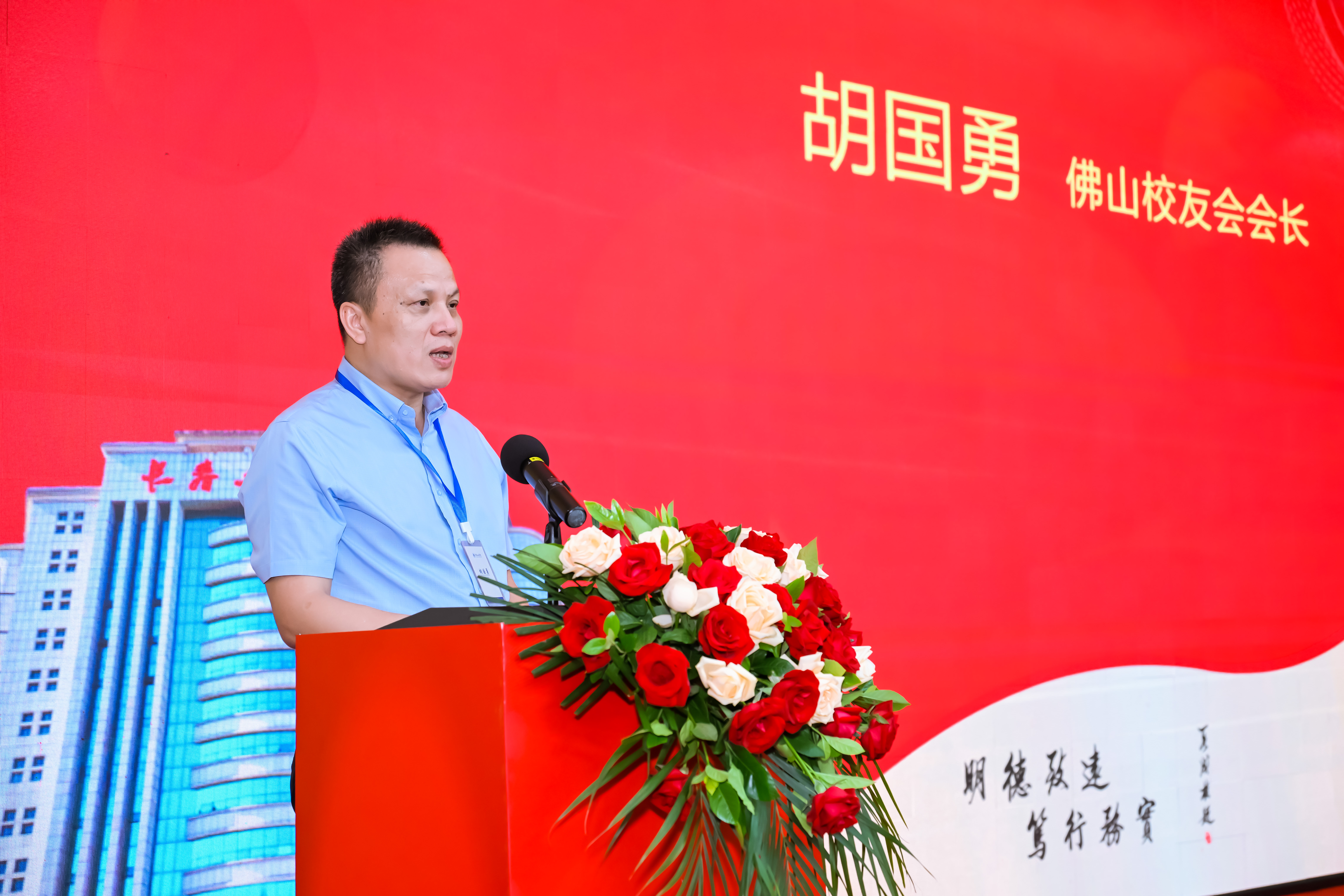 胡国勇校友代表第一届理事会讲话,他表示,当选会长深感荣幸,也深感责任重大。他表示,将带领佛山校友们永远铭记“明德致远,笃行务实”的校训,秉承“团结友爱,联系友情,互助互惠,为母校多作贡献”的宗旨,开展好校友会工作。他将为校友们搭建平台,促进校友之间的联系、交流和互助;同时,架起校友会与母校沟通联系的桥梁,激发校友热爱母校、宣传母校、建设母校的热情,积极为母校贡献佛山校友会的力量。