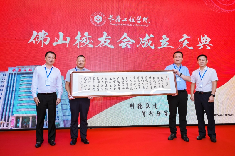 广东校友会执行会长王冠军、副会长刘志坚代表广东校友会向佛山校友会赠送了由刘志坚副会长亲自设计的作品,体现了他们对佛山校友会的深厚情谊,期盼佛山校友会越来越好。