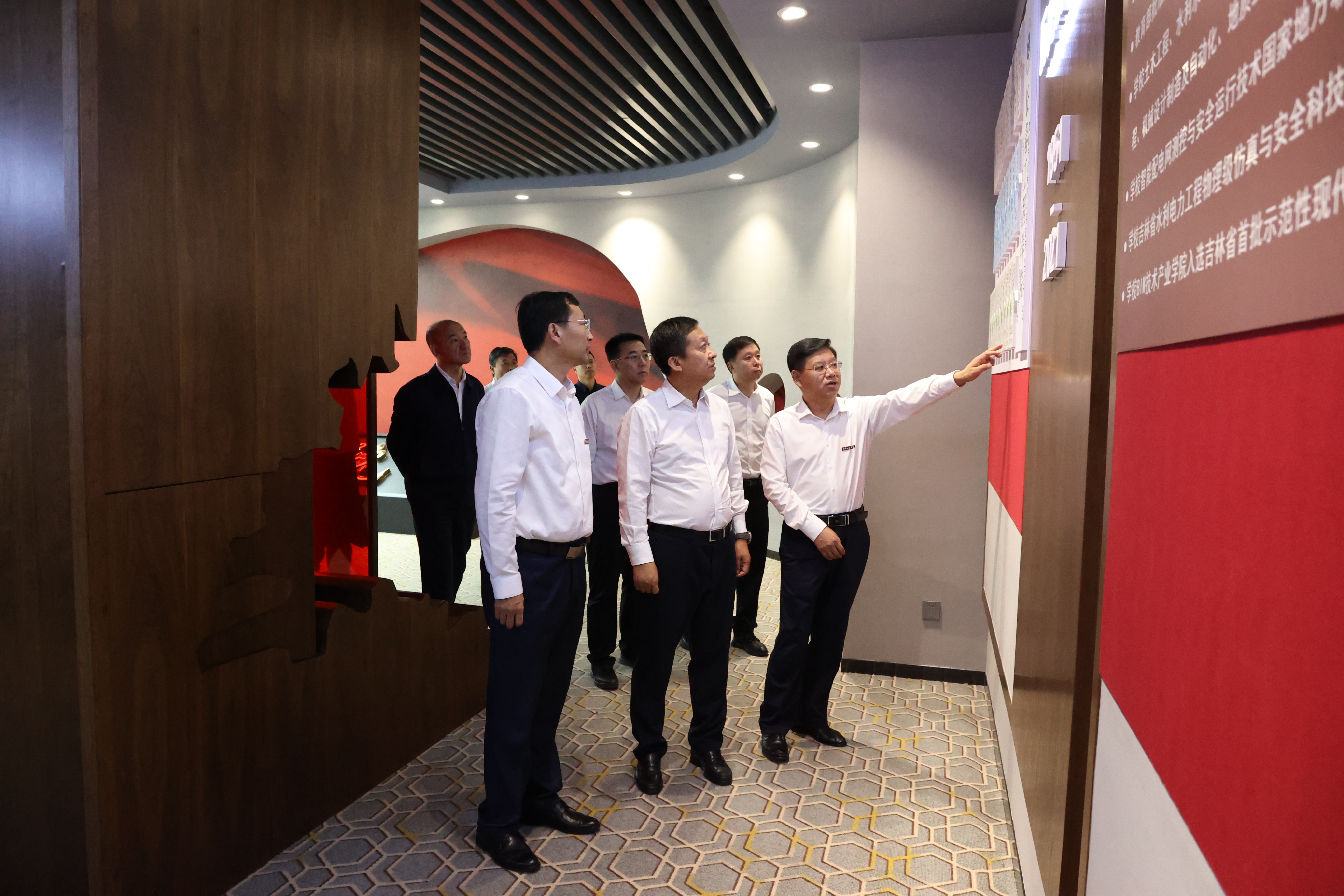 李国强副省长一行先后走访调研了学生寝室、校史馆、吉林省水工程安全与灾害防治工程实验室、智能配电网测控与安全运行技术国家地方联合工程研究中心、学生食堂等地。在调研中,李国强与师生们进行了充分的交流,深入了解学校的发展概况和育人工作。