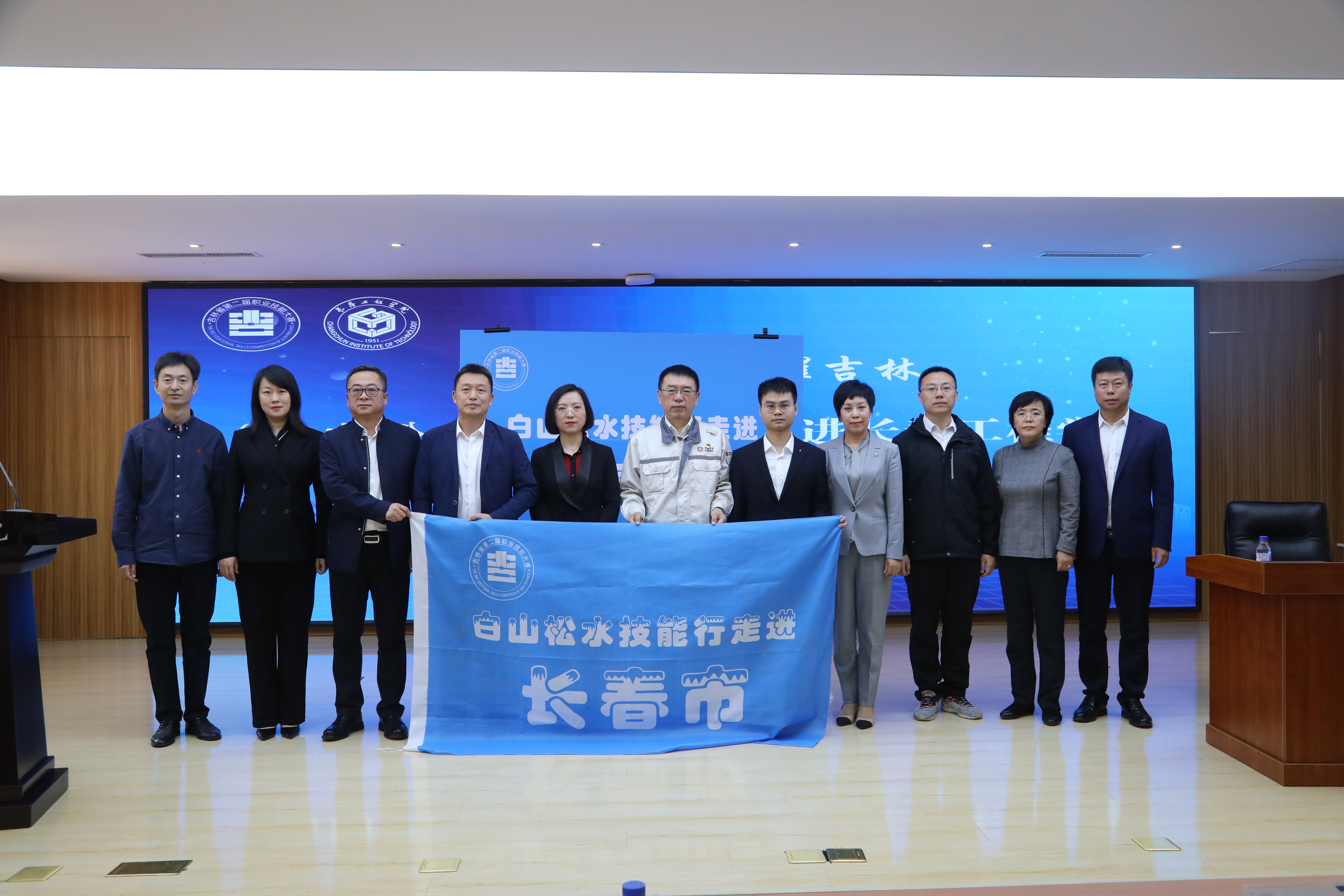 会上进行了签字仪式,与会领导和宣讲人在“白山松水技能行”宣讲会会旗上签字。