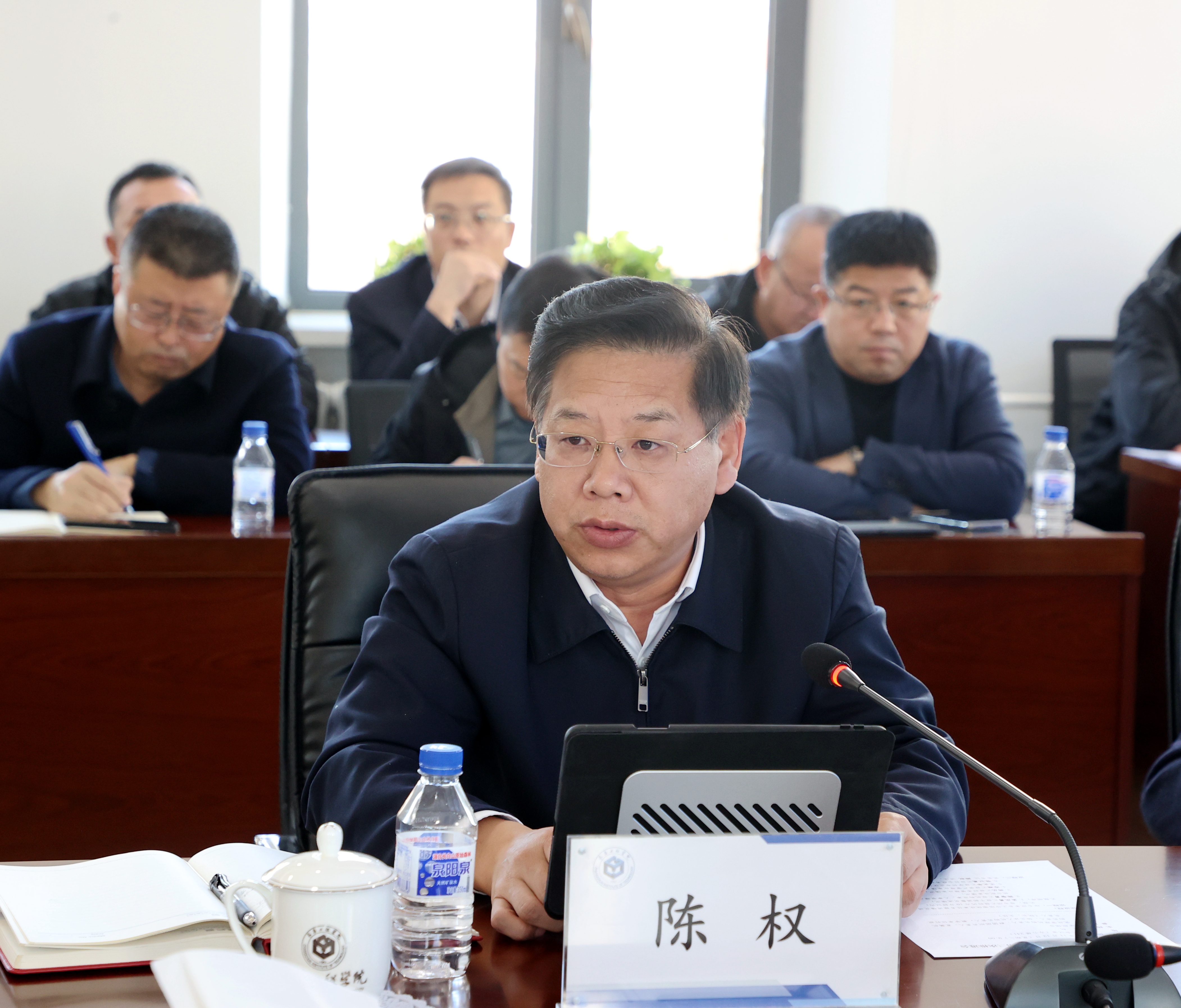 11月12日,学校在第三会议室召开2024年重点工作第三次推进会。学校领导陈权、王延博、王朝勇、张邦成、韩威参加会议。会议由党委书记陈权主持。