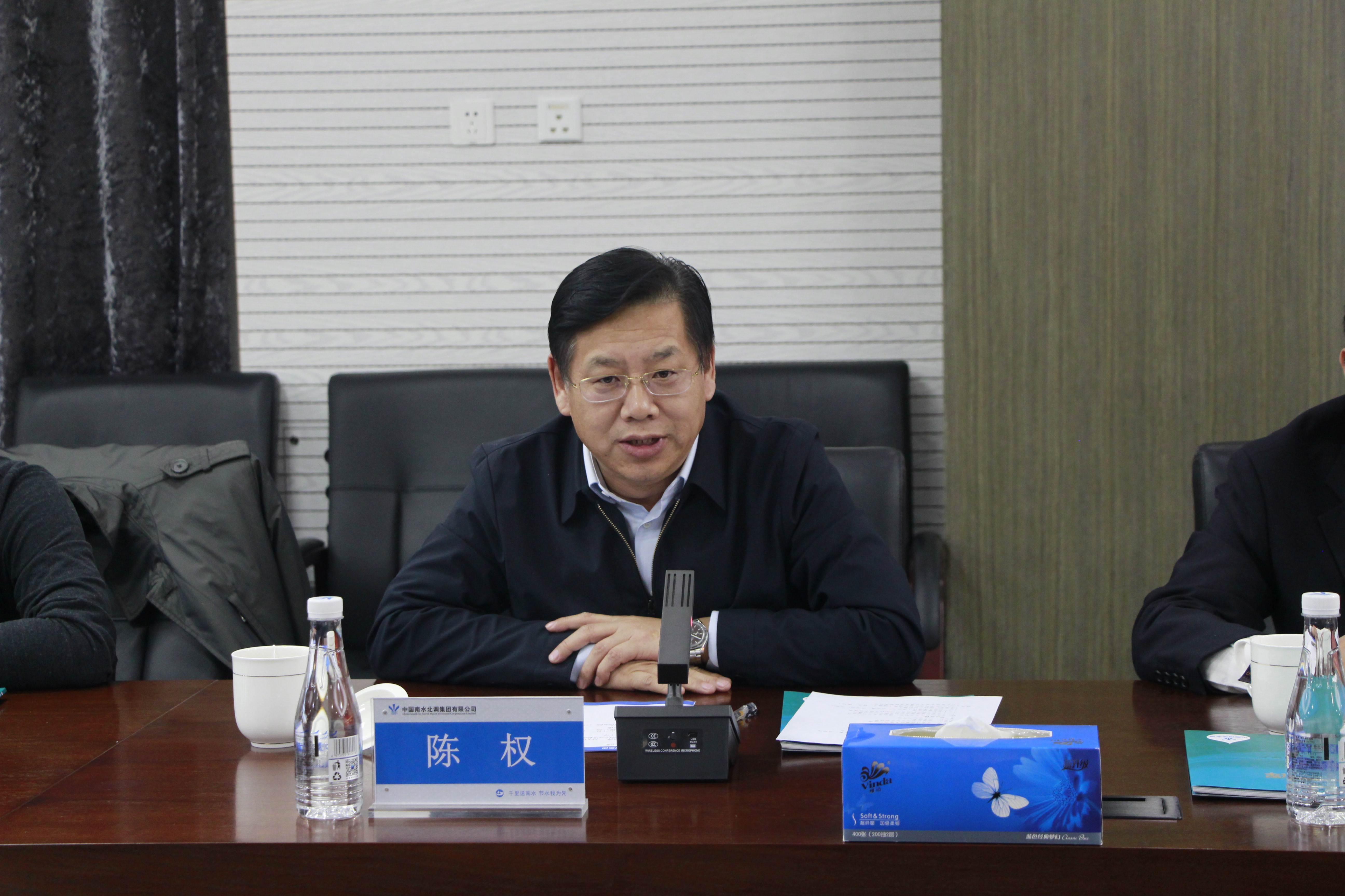 陈权书记感谢京水公司对学校一行人的热情接待,并简要介绍了学校的发展情况。他强调,水利工程对于拉动经济、改善民生意义重大,京水公司作为中国南水北调集团所属企业,因国家需求而生,因市场发展而兴,因强国建设而旺,承担着为国担当、为水贡献的光荣使命,为国家经济、社会发展作出了重要贡献。希望双方围绕国家水利事业发展需求,深化产教融合、科教融汇,双向赋能、携手共进,促进学校的人才培养和企业需求同频共振,彼此共赢,为国家水利工程事业发展贡献力量。