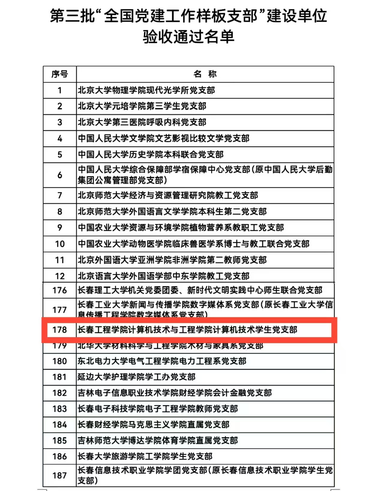 近日,教育部办公厅公布了全国第三批新时代高校党建示范创建和质量创优工作建设单位验收通过名单,我校计算机技术与工程学院计算机技术学生党支部支部顺利通过了教育部“全国党建工作样板支部”建设单位验收。