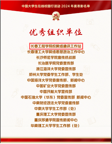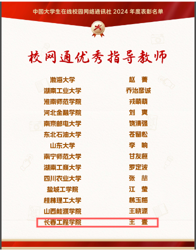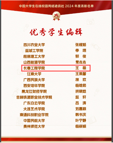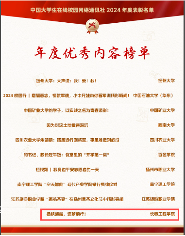 12月26日,教育部中国大学生在线网站发布公告,对2024年校园网络通讯站及校园行活动进行表彰,我校喜获五类奖项。学校被评为“优秀校网通站”,学校网通站被评为“优秀组织单位”,指导教师王壹被评为2024年度“校网通优秀指导教师”,网通站站长王萌被评为“优秀学生编辑”,原创作品《扬帆起航,逐梦前行!》被评为“年度优秀内容”。