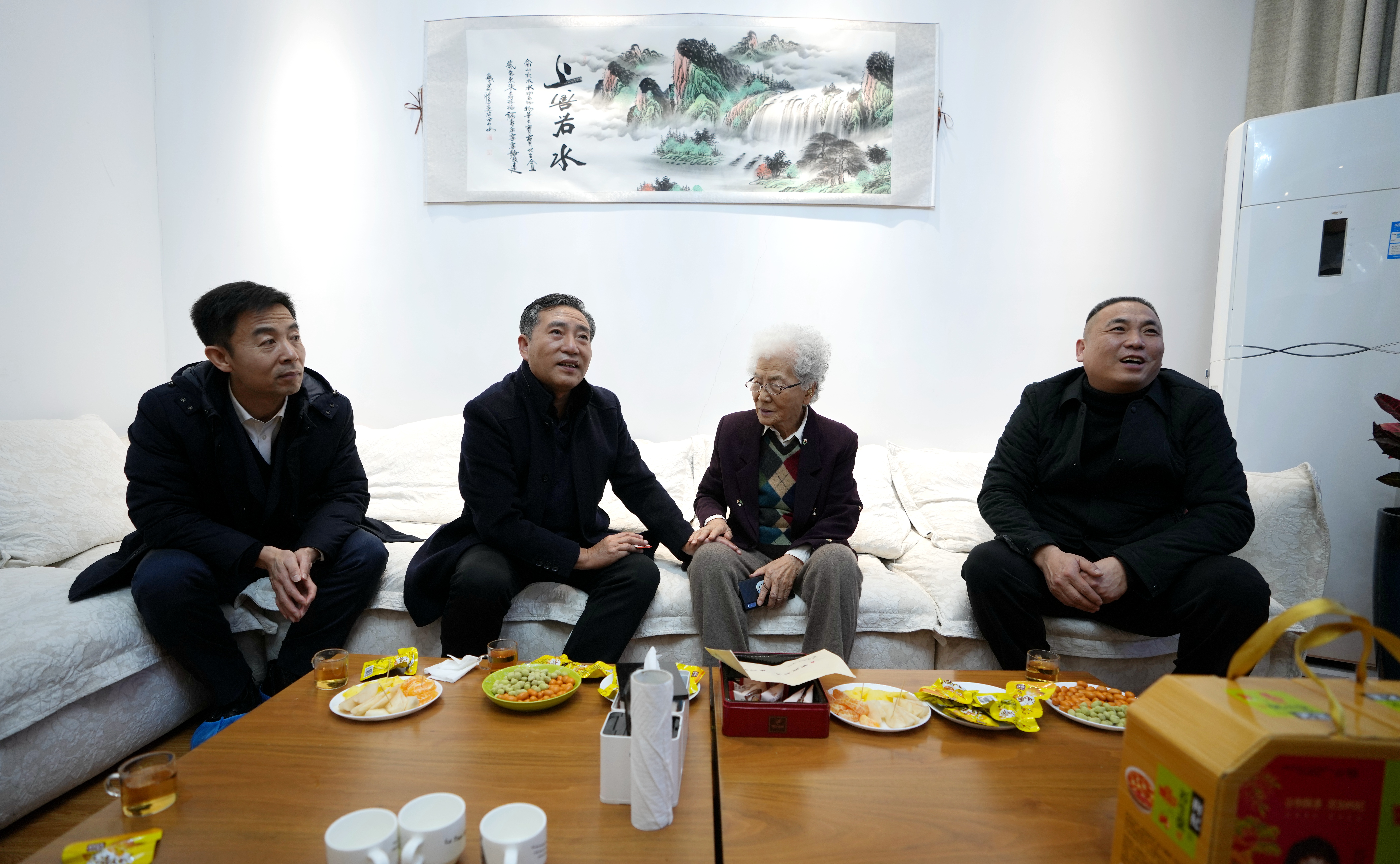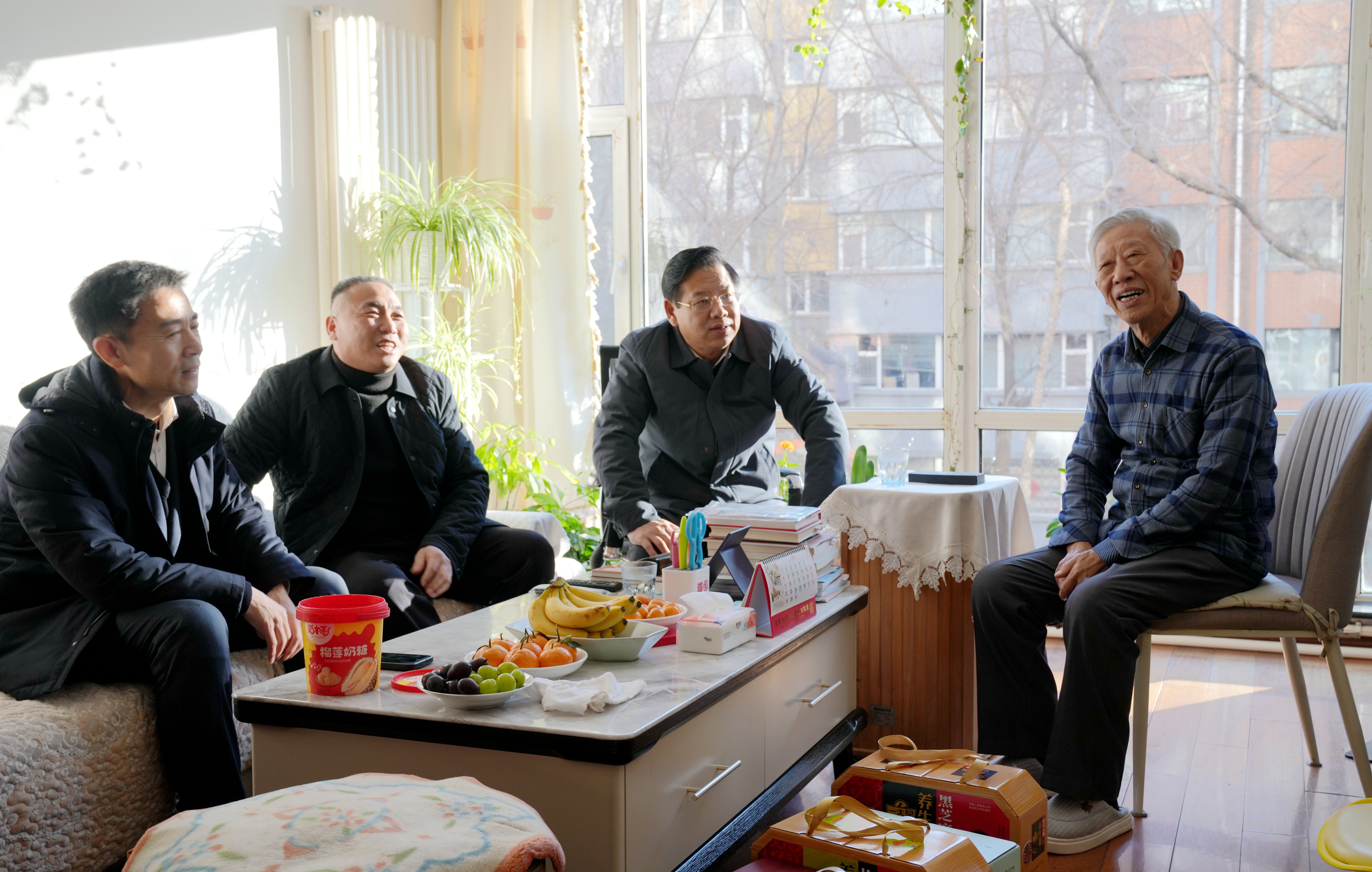 在学校退休老领导高凌汉的家里,陈权书记关切询问了高老师的生活、身体情况,介绍了学校近年来取得的各项成就,感谢他为学校的发展建设所做出的贡献,叮嘱他和他的家人保重身体,祝福他们度过一个温馨愉快的元旦佳节。