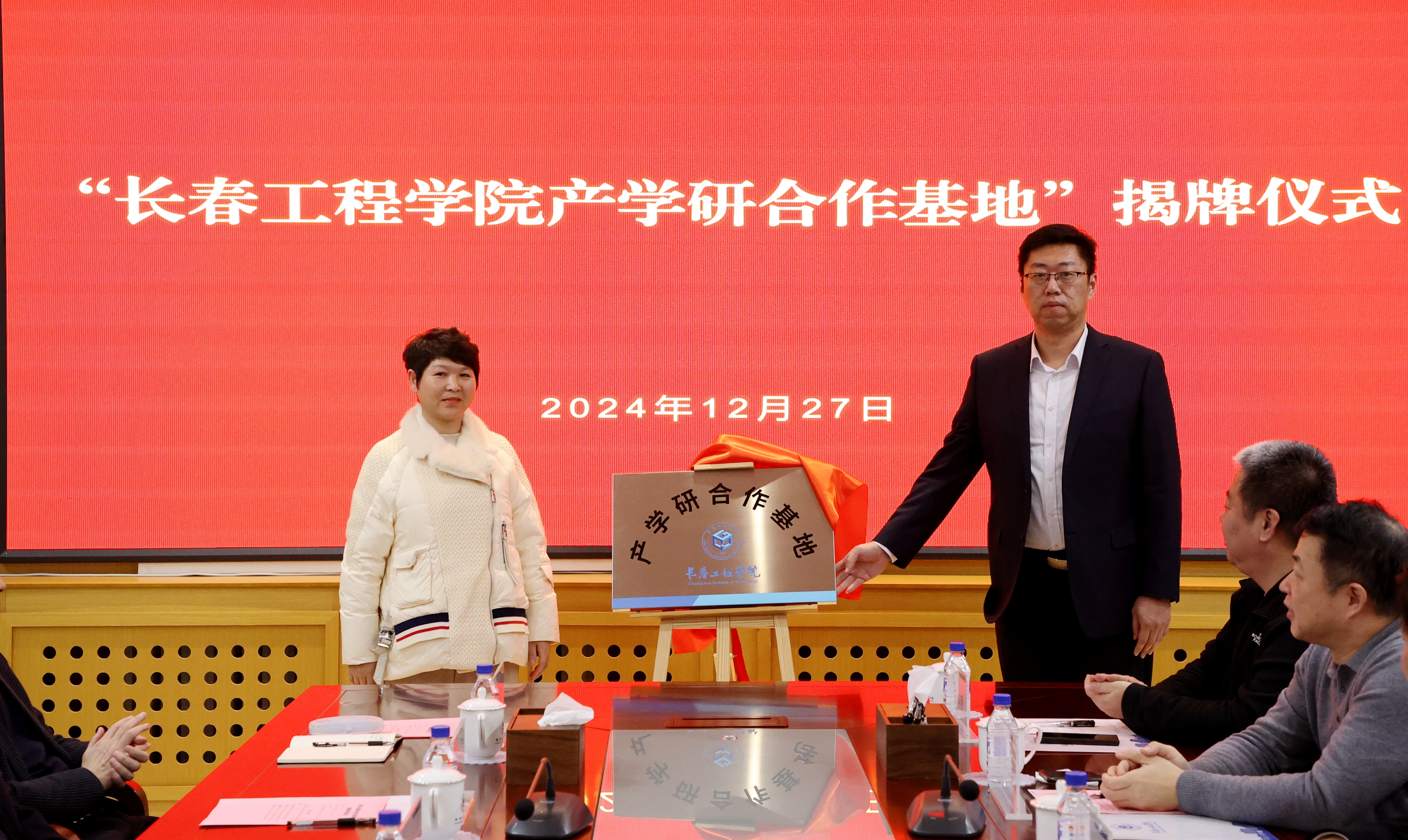 学校职能部门代表与企业代表共同为学校产学研合作基地揭牌。