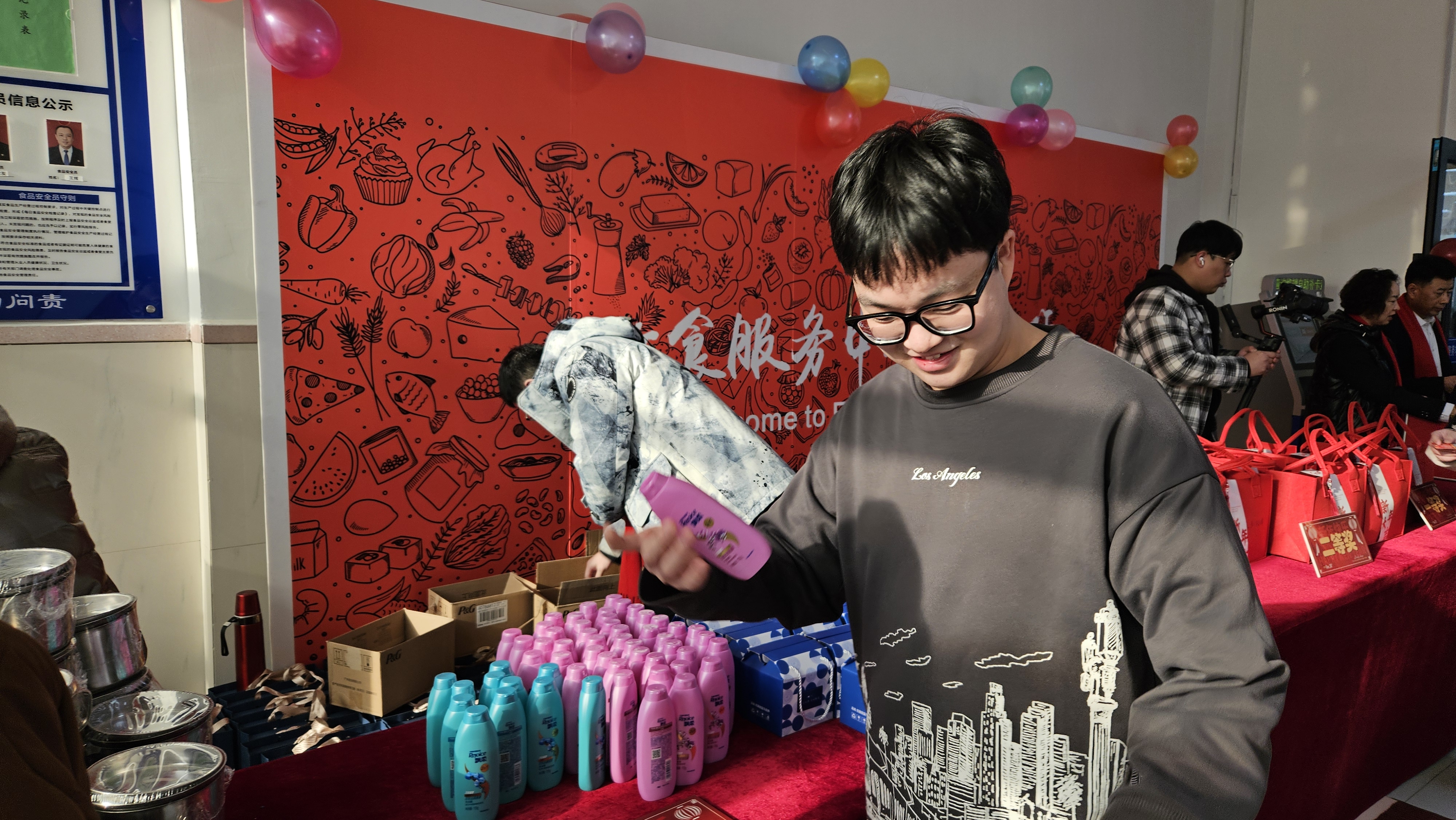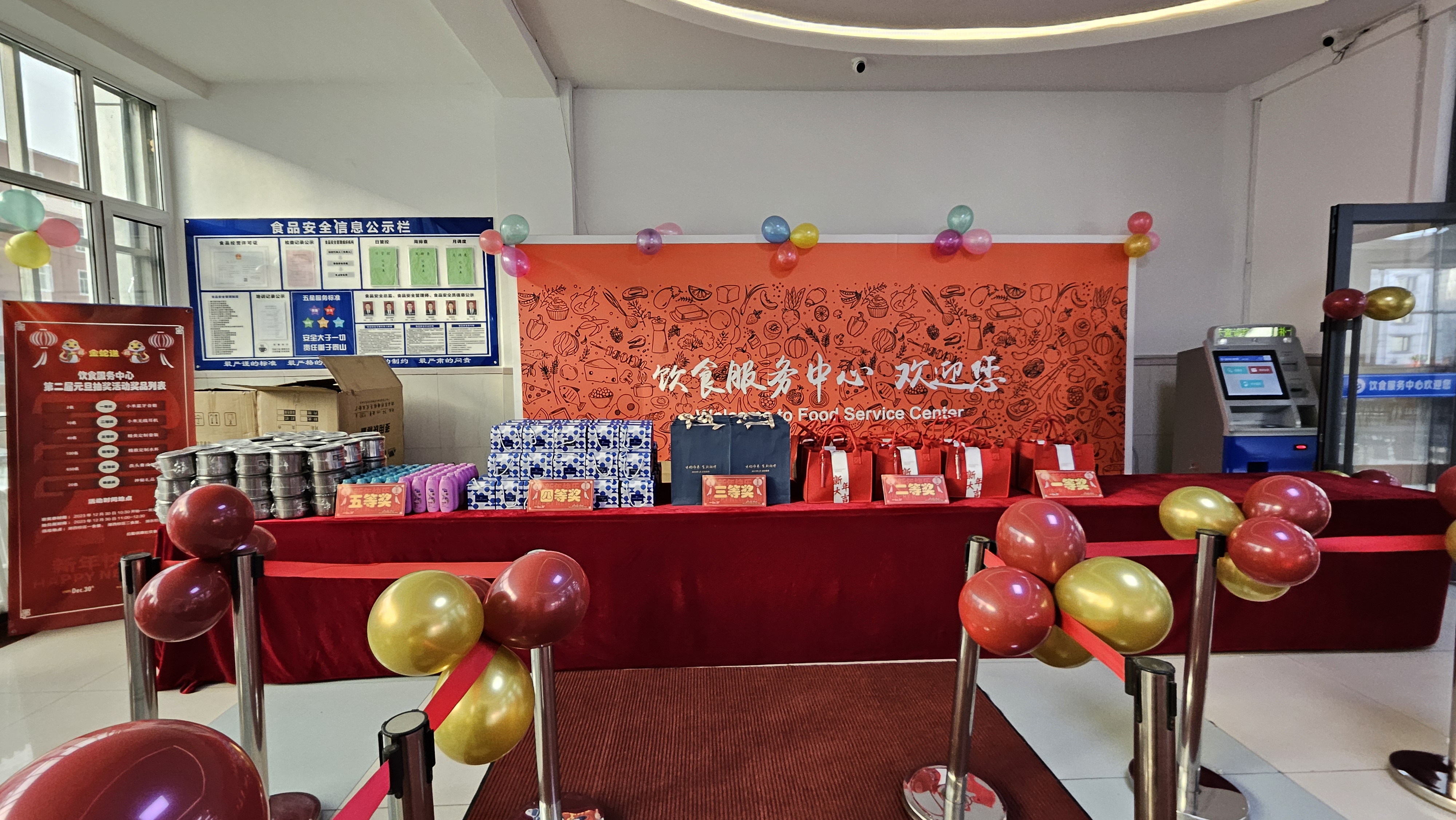 四季烟火暖人心,华岁送福迎新年。为感谢广大同学们的支持与厚爱,学校饮食服务中心于12月30日中午,在学校湖西、湖东两个校区三个学生食堂举行了元旦抽奖活动。
