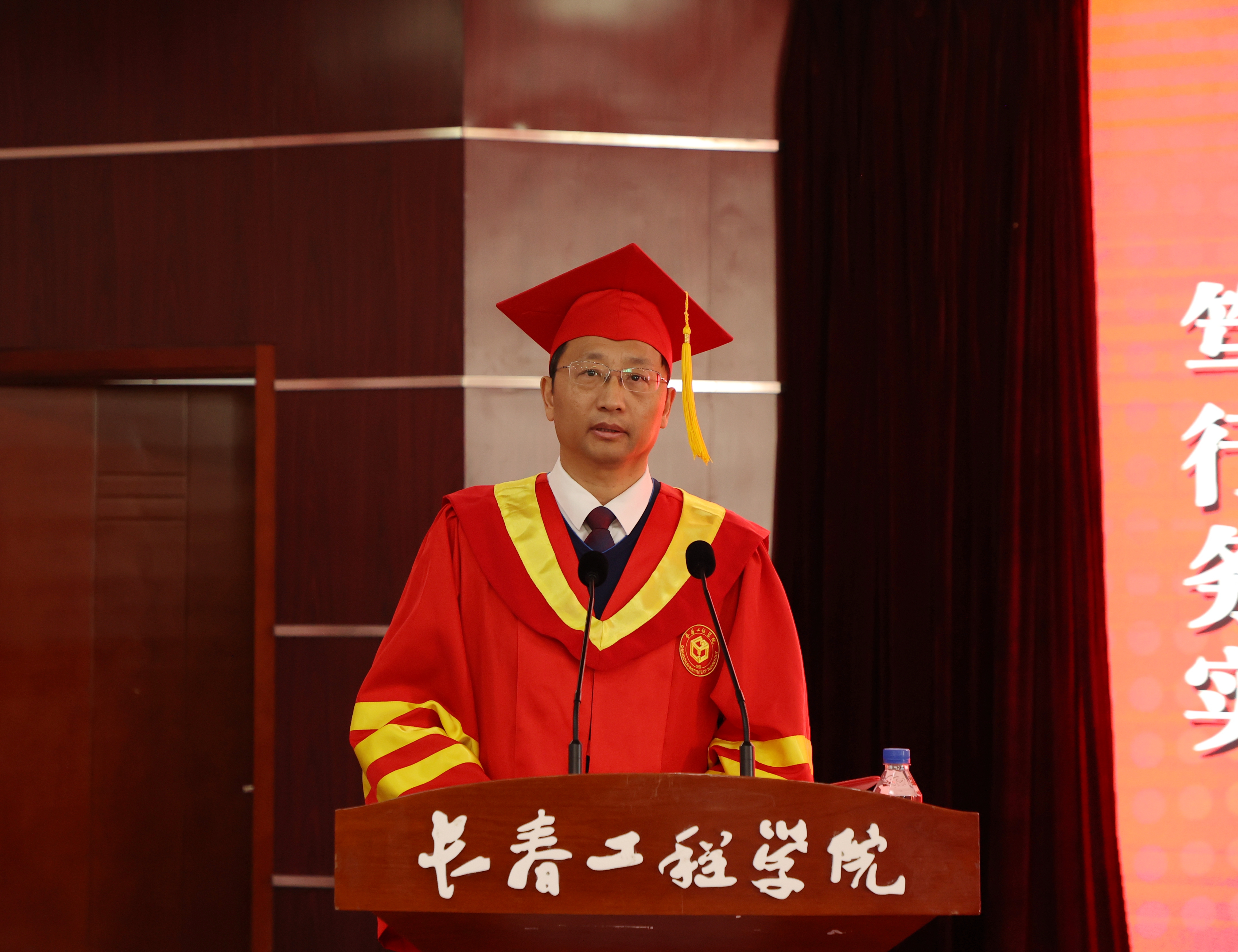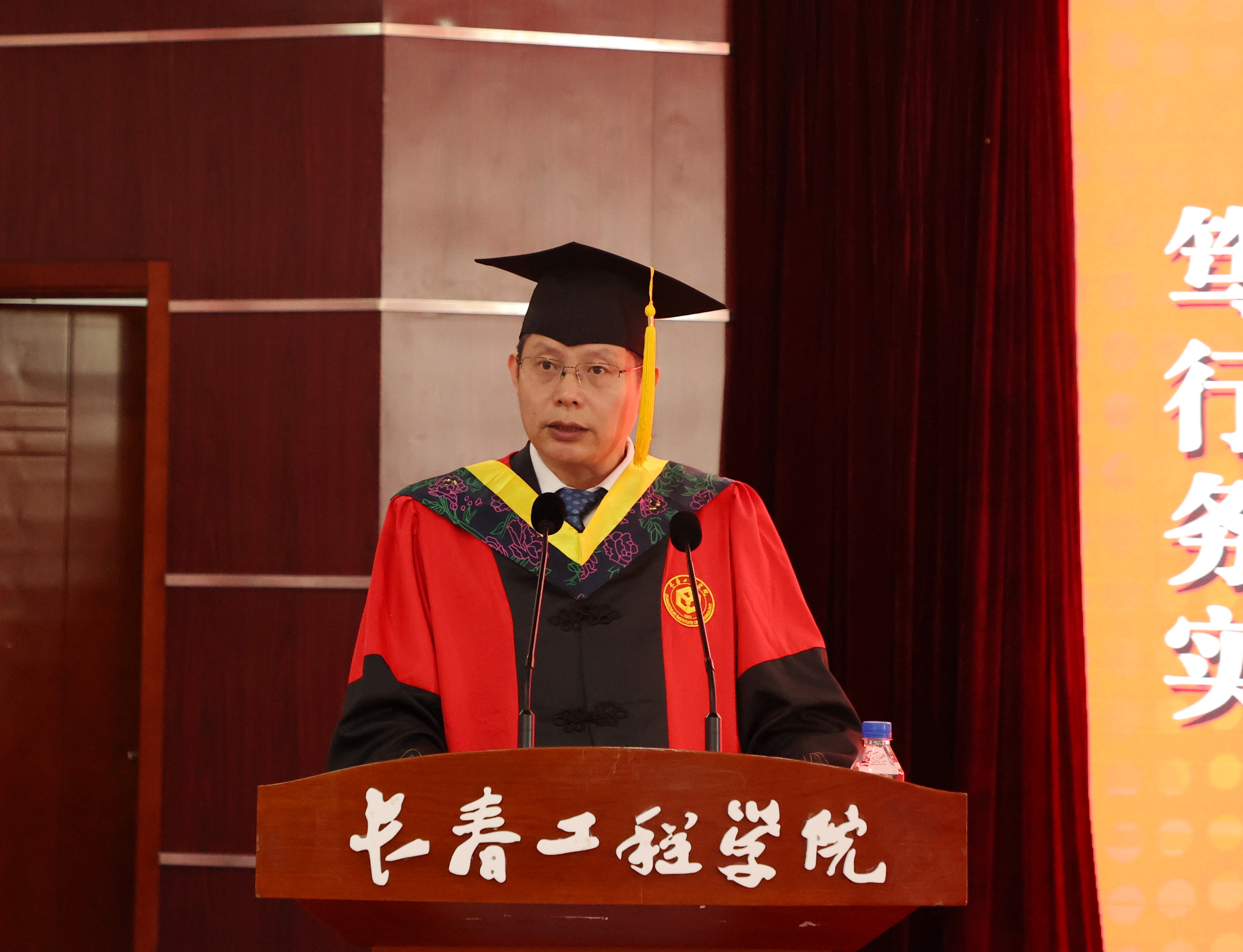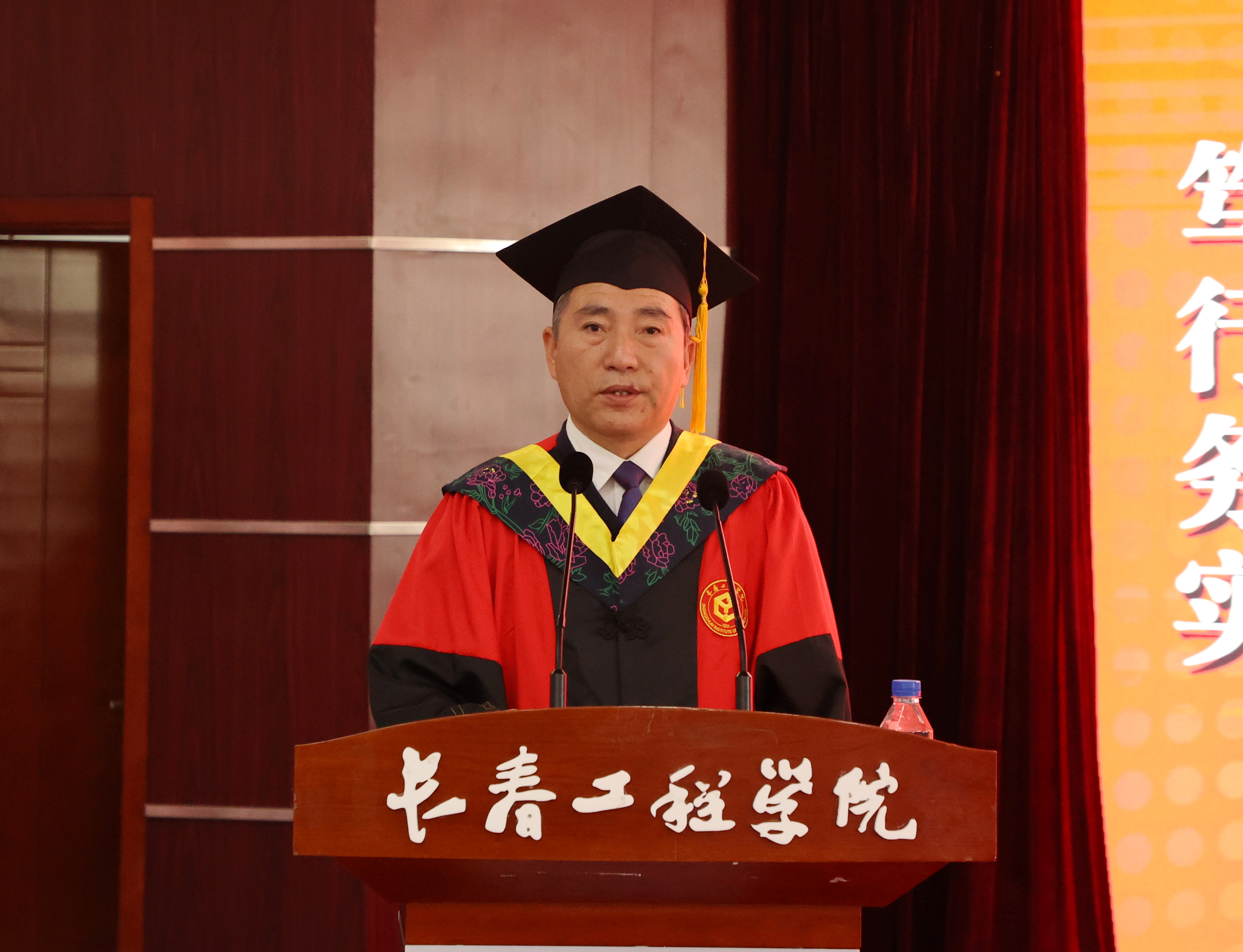 宋立军校长在讲话中饱含深情地寄语毕业生,并对同学们提出三点希望:一是勇于面对挑战,不负青春韶华。每个人,特别是年轻的同学们未来都有自己的发展机遇,但也要面对生活的挑战,都要在自己所处的时代大背景下,创造属于自己的人生阅历,书写属于自己的人生意义。二是希望同学们走上工作岗位后,继续传承长工程人“工程报国、矢志不渝”的精神特质,肩负时代使命、勤勉敬业,将个人成长奋斗与国家事业发展紧密相连,立志成为一名卓越的工程师和卓越的工程管理人才。三是直面科技创新,主动应变求变。期待同学们以自己的学科特长为舟,插上人工智能等新技术的风帆,在科技浪潮汹涌澎湃的时代,做勇敢的冲浪者,在广袤的祖国大地上镌刻出属于长工程人的辉煌印记。