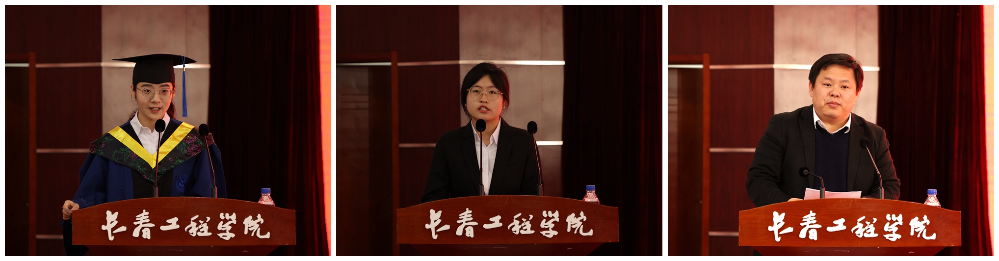 毕业研究生代表王杰在发言中表达了对母校、对老师们的深厚感激之情和对未来的美好憧憬,在校研究生代表陈妙妙在发言中表达了对学长、学姐们的祝福,并分享了自己的学习研究经历。