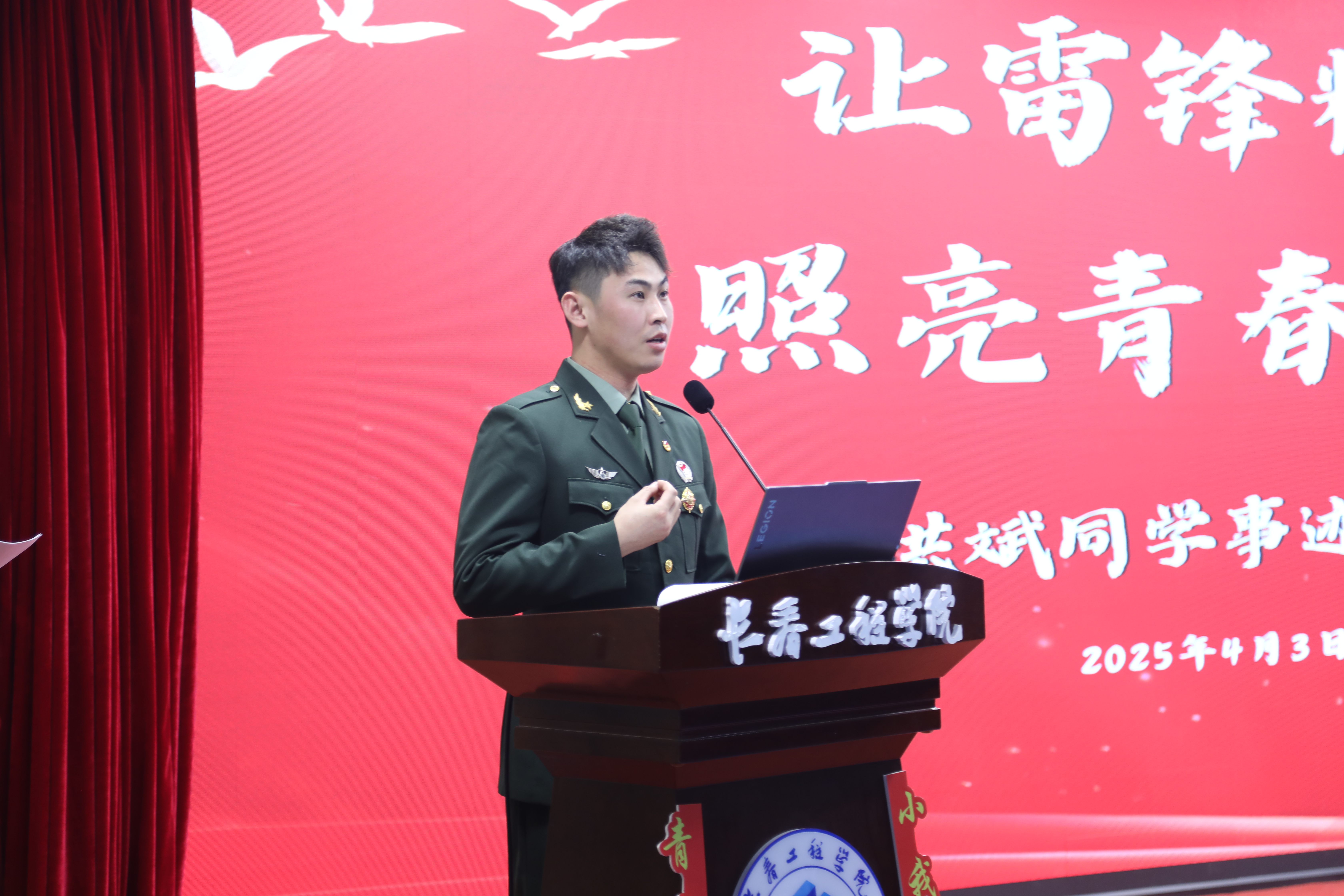 分享会上,刘洪斌同学以真挚的情感讲述了自己从军报国的心路历程和坚持志愿服务的感人故事,生动诠释了新时代青年对雷锋精神的传承与践行。在互动环节,现场同学围绕志愿服务、初心坚守等话题与他展开交流。会上为刘洪斌同学举行了荣誉红花佩戴仪式,以表彰他无私奉献的精神。