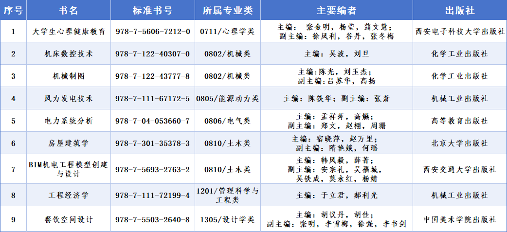 入选教材种类覆盖了电气类、机械类、土木类、设计学类等多个学科领域,教材内容立足教育强国目标和学科发展前沿,围绕行业技术变革和现代信息技术,深度融合课程思政元素,充分体现了学校聚焦国家战略需求、对接区域产业升级、深化高等教育综合改革的教材建设成效。
