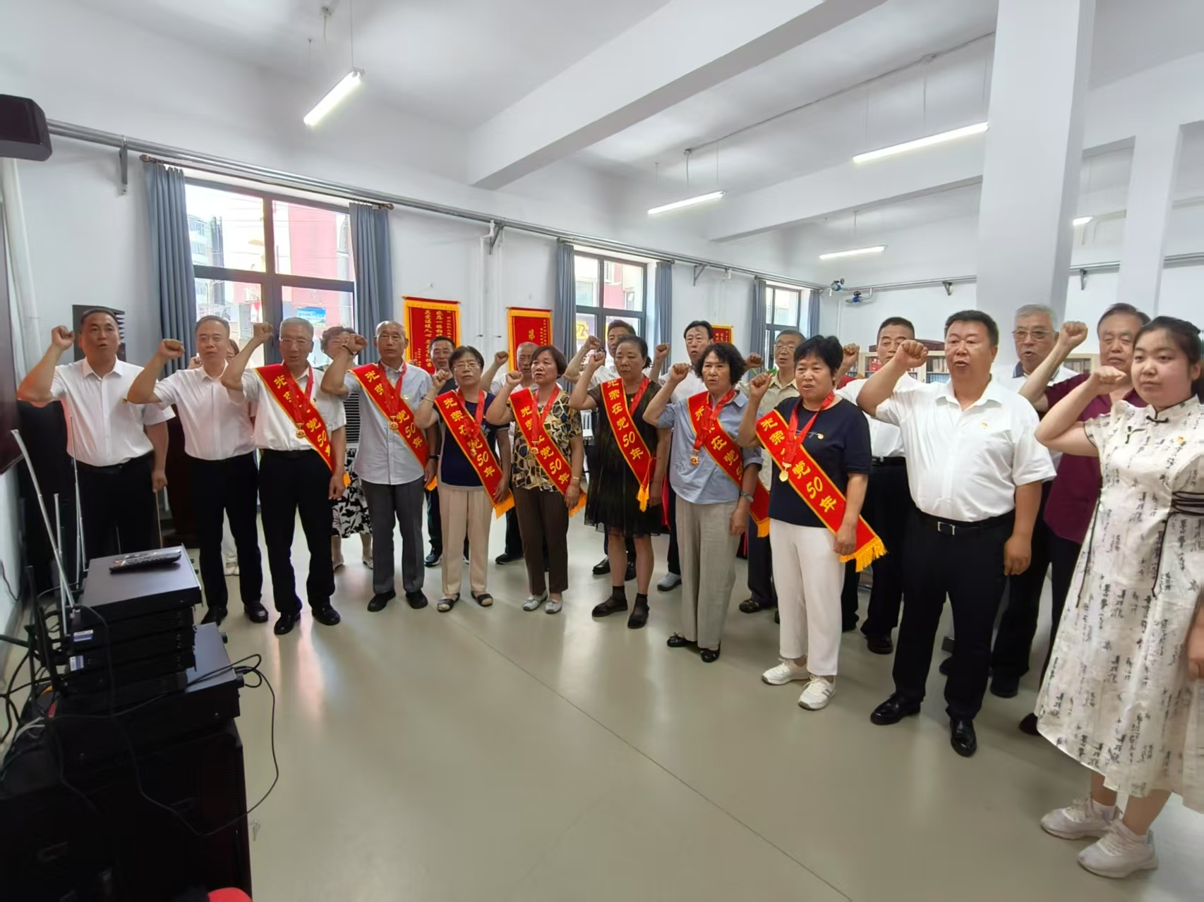 在中国共产党成立104周年来临之际,6月26日,学校“光荣在党50年”纪念章颁发仪式在离退休职工服务中心会议室举行。荣获纪念章的老党员,学校相关部门负责人,离退休党委各党支部书记参加会议。