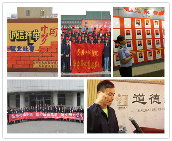 多年来,学生工作处以深化立德树人工程、推动大学文化建设为重点,积极创建优良的校风、学风,强化学生的诚信意识,建设“道德加油站”,努力打造以“诚信”为重要内容的大学生思想政治教育品牌活动,切实提升广大学生道德文化修养。尤其是近年来,在学校、家庭及学生个人的共同努力下,我校先后涌现了勇救落水青年的张伟男;多次义务献血并自愿捐献造血干细胞的孙延丰;全国自强之星李超;不要捐款,不要资助,卖枸杞积攒学费的周涛;拾金不昧的张思远等多名学生典型,形成了校园先进典型的“群星效应”。