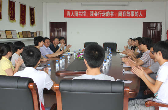 经过我校图书馆领导和工作人员三个月的精心筹备,在校内采集了17本“真人图书”,都是我校各院系资深教授和博士。6月28日上午十点,“真人图书馆”正式开馆,首期活动的“真人图书”是水利与环境工程学院副院长边德军教授,到场的读者是来自水环学院的十二名读者。