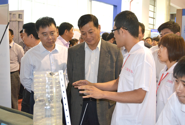 展示会当天有多位吉林省领导莅临我校展区问询项目详细情况并指导。同时还有多家有合作倾向的企业到我校大学生科技创新项目展区前参观问询,并表示此项目投入实际商业化运作前景一片大好。