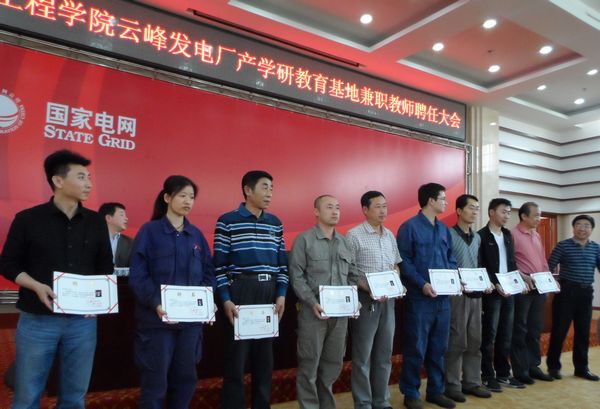 聘任仪式上,我校聘任云峰发电厂副总工程师赵万清高工为客座教授,聘任龙元刚等22名技术骨干为我校云峰发电厂产学研基地兼职教师。